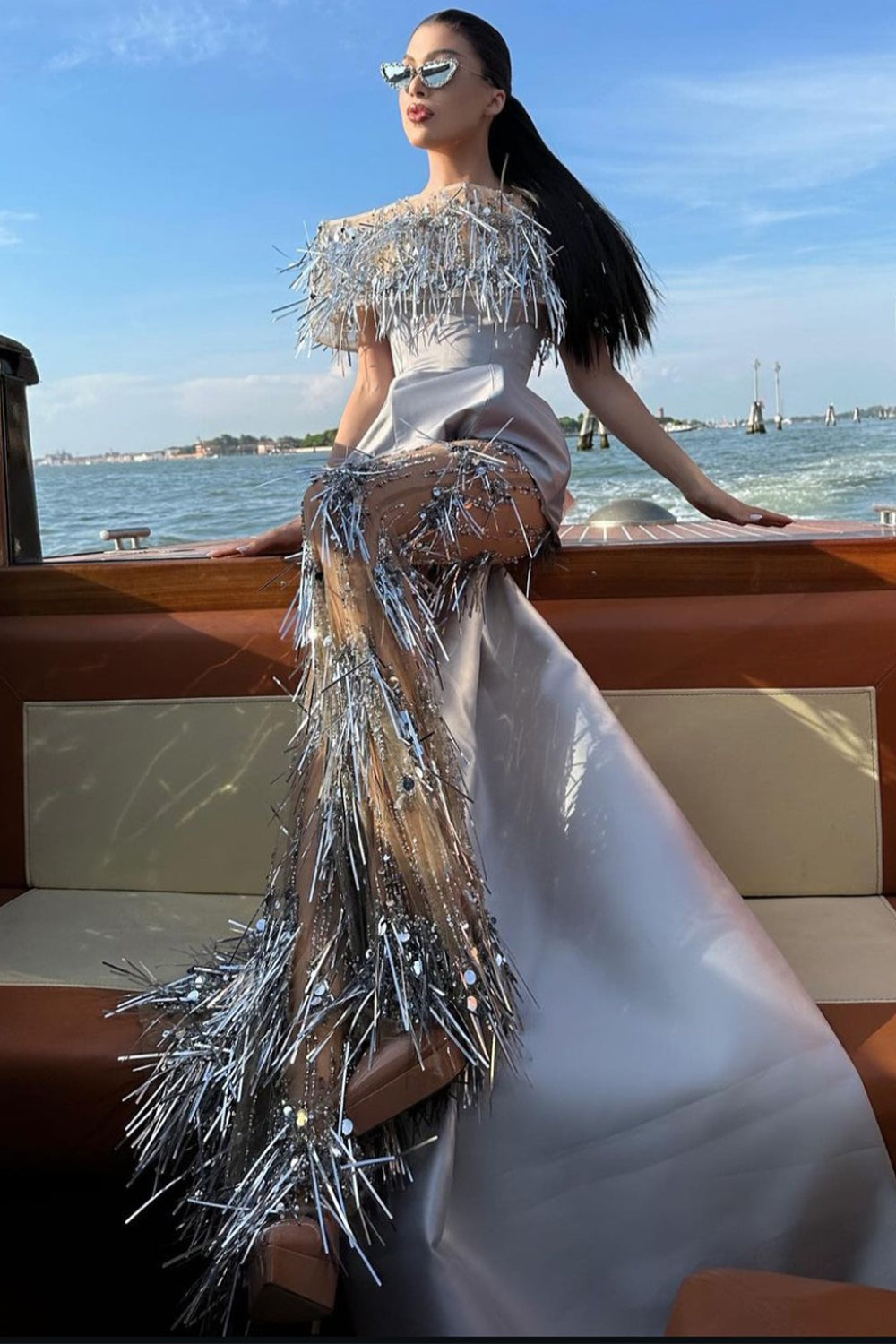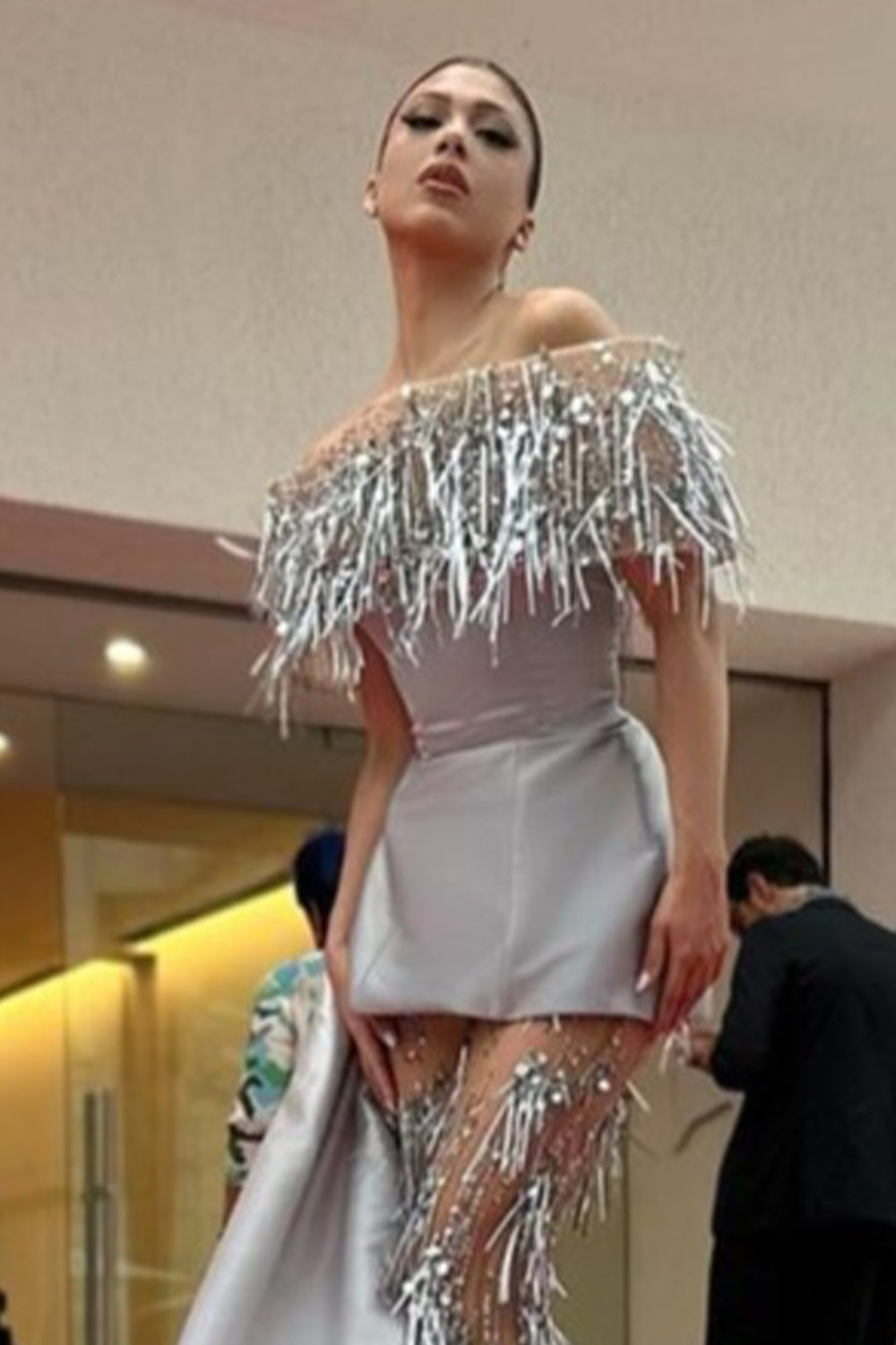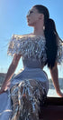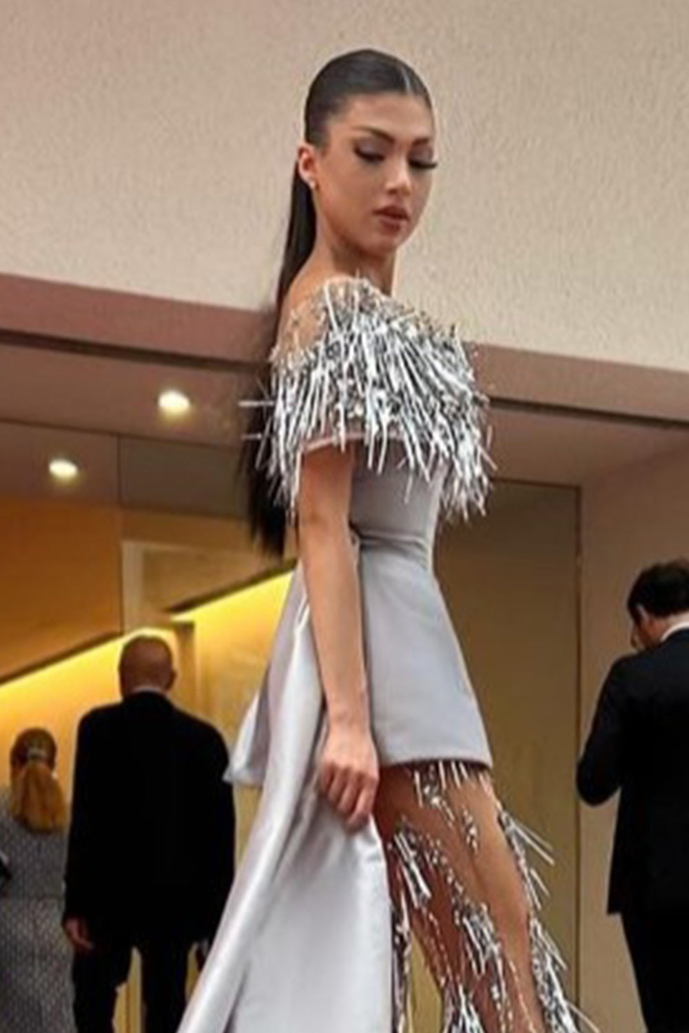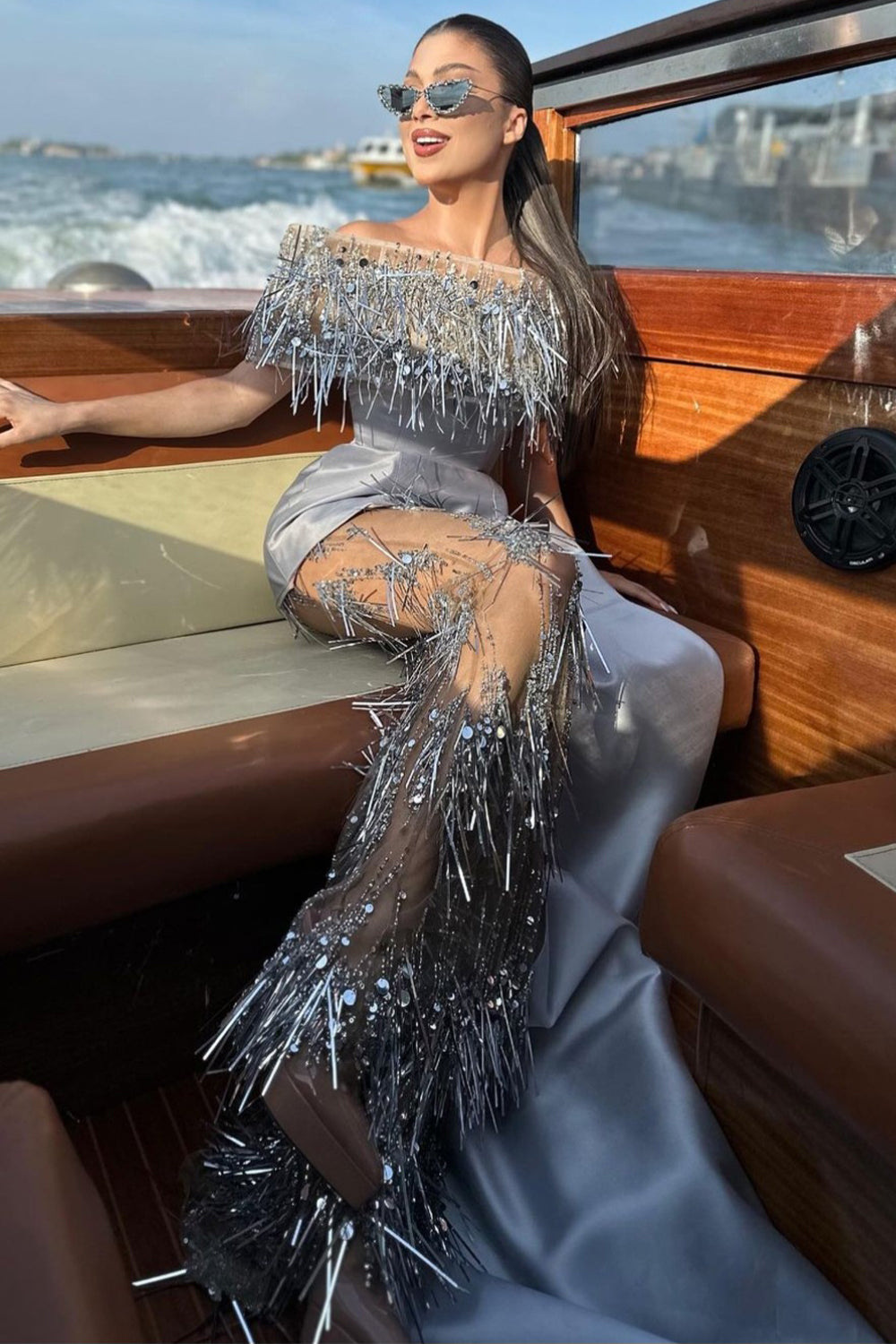 ДЪЛЪГ СЕТ ТОП С ПАНТАЛОН И ПОЛА STARLIGHT ПАЙЕТИ САТЕН СРЕБЪРЕН