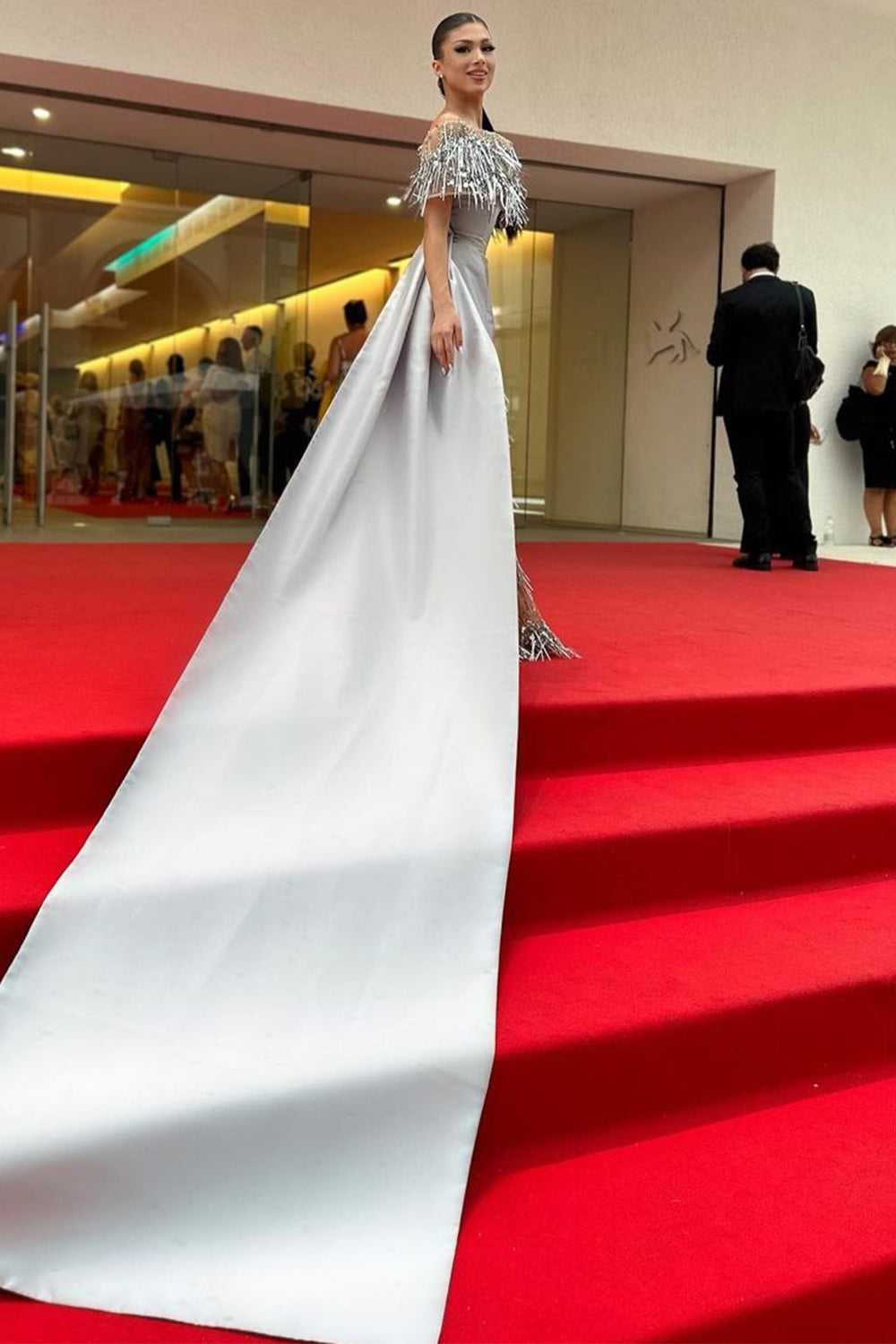 Моля, не поставяйте роклята в пералня с центрофуга или в сушилня, както и не прилагайте агресивно третиране, за да запазите нейния луксозен силует и качество.