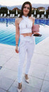 МАКСИ СЕТ 2 ЧАСТИ ТОП С ПАНТАЛОН ТРИКО БЯЛ