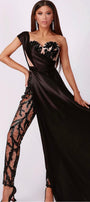 ДЪЛЪГ СЕТ 4 ЧАСТИ ТОП С ПАНТАЛОН AKSANA ДАНТЕЛА САТЕН ЧЕРЕН С НЮД