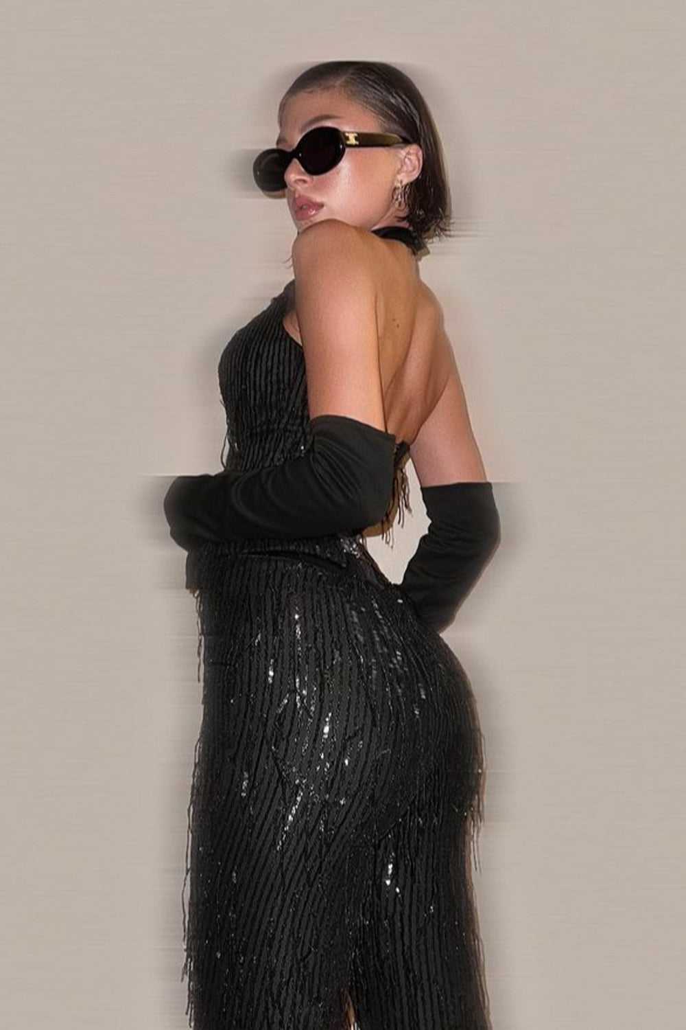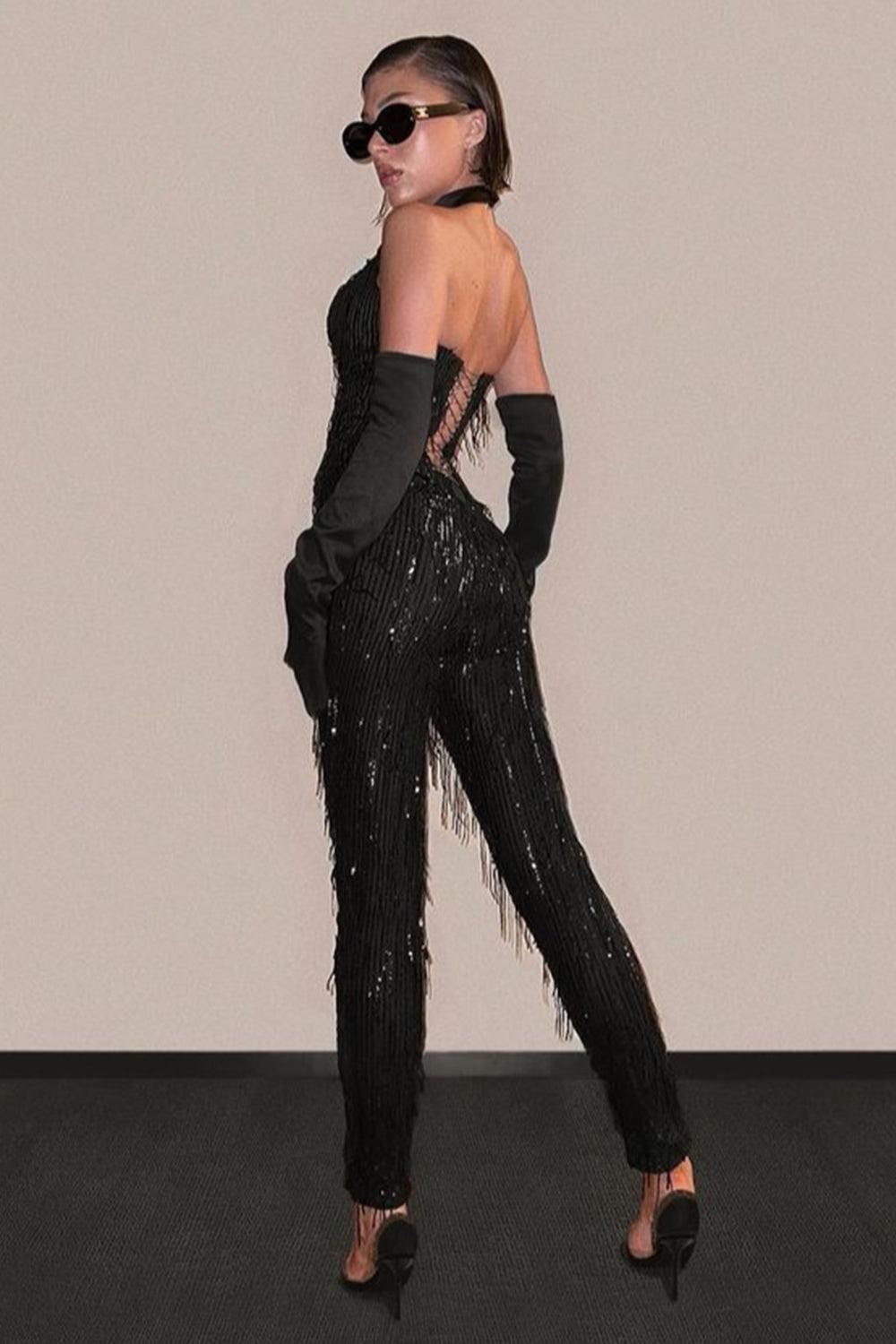 ДЪЛЪГ СЕТ 3 ЧАСТИ ТОП С ПАНТАЛОН ALIANNA ПАЙЕТИ ЧЕРЕН