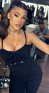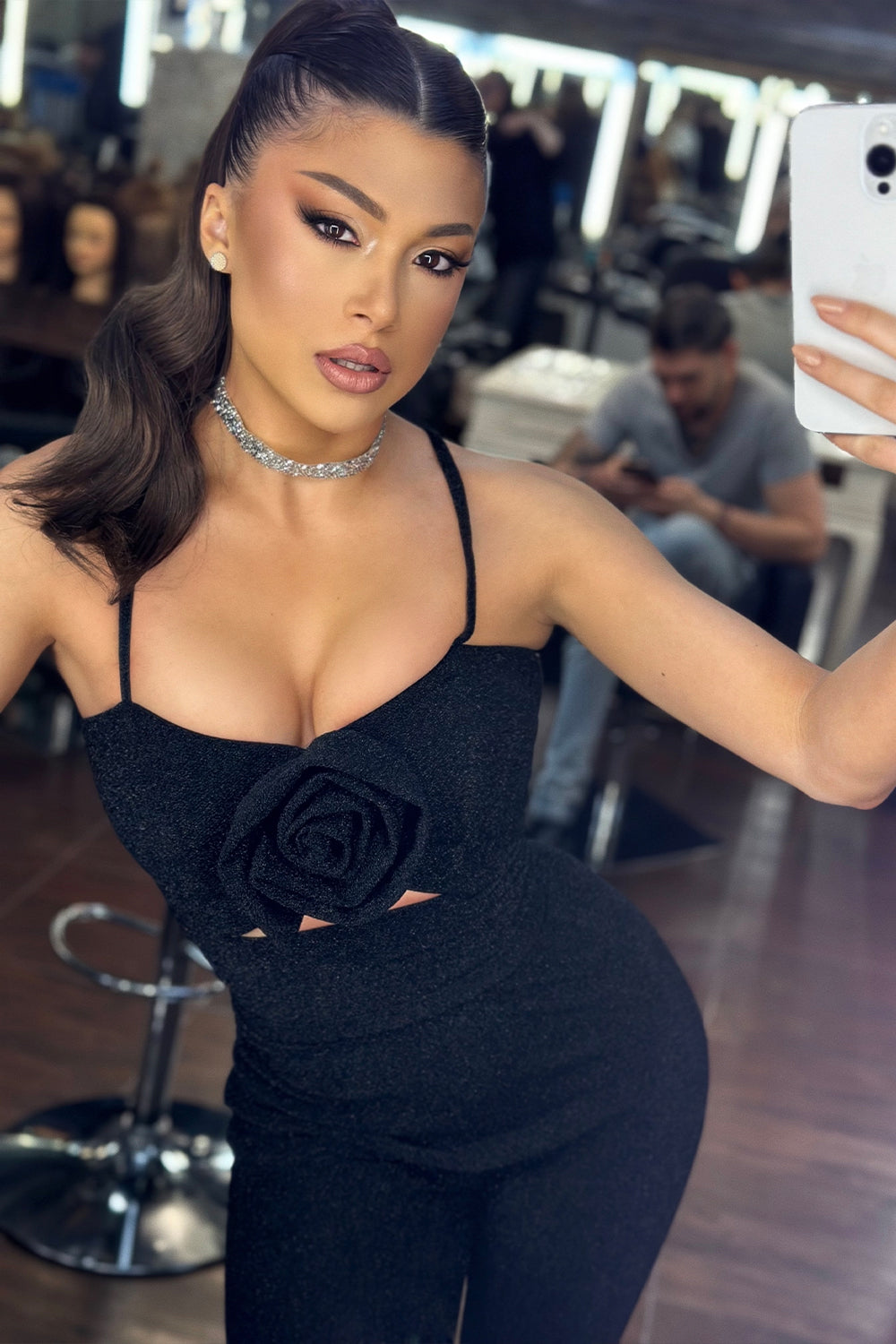 ДЪЛЪГ СЕТ ТОП С ПАНТАЛОН BRITTANY ТРИКО ЛАМЕ ЧЕРЕН