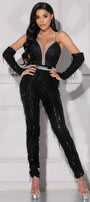 ДЪЛЪГ СЕТ ТОП С ПАНТАЛОН ESTELLA ДАНТЕЛА ГЛИТЕР ПАЙЕТИ КАМЪНИ ЧЕРЕН