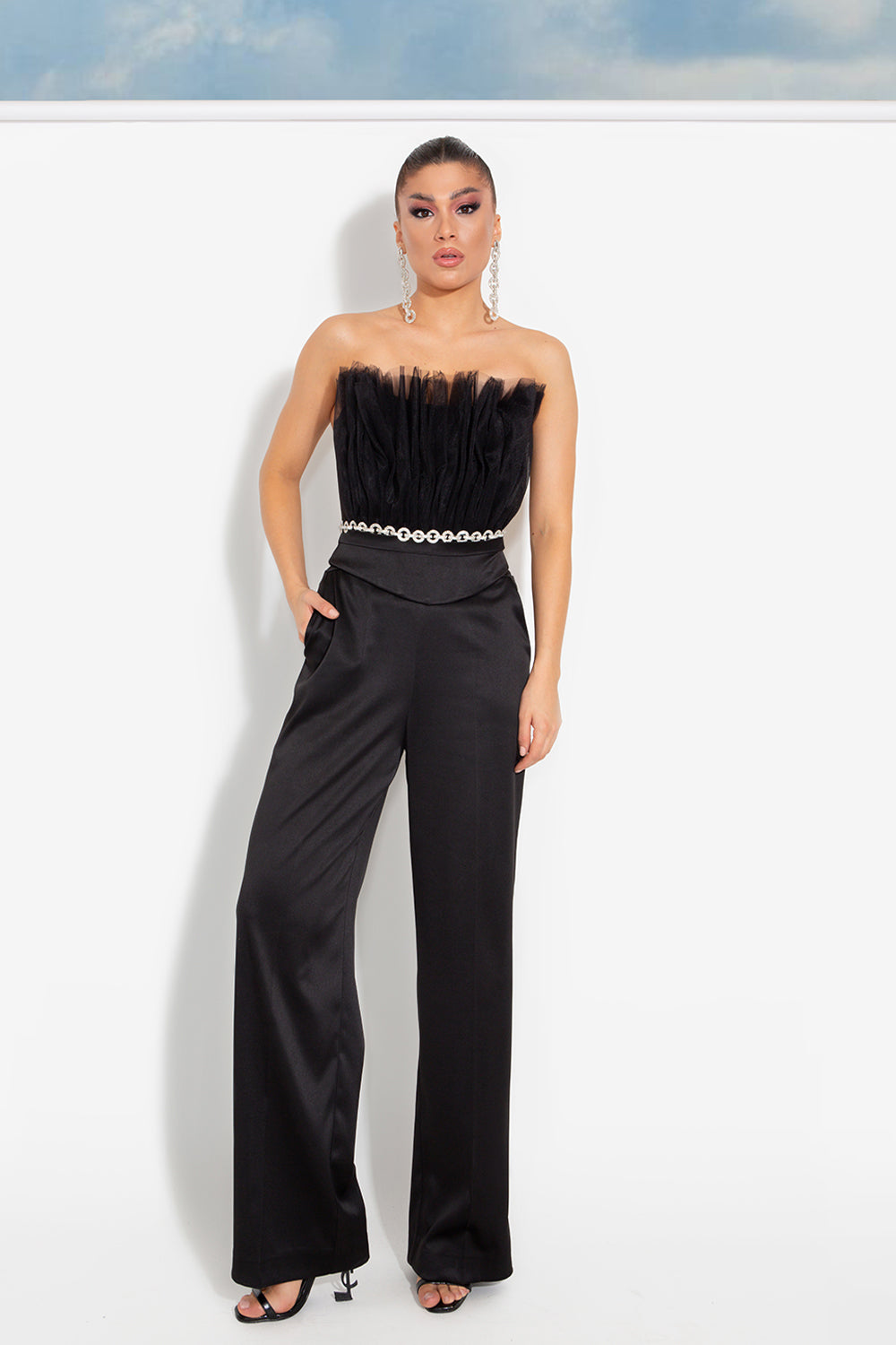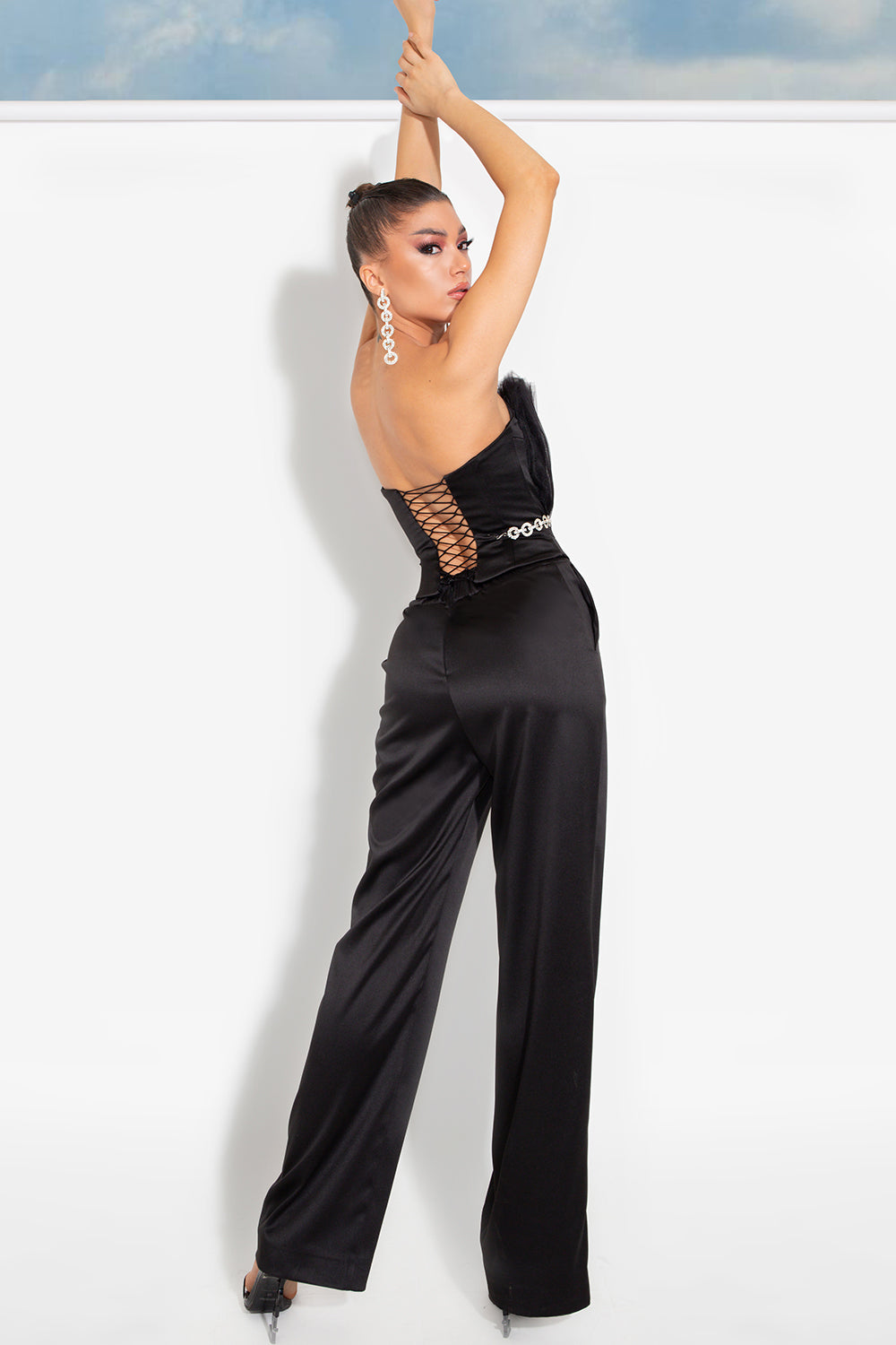ДЪЛЪГ СЕТ 2 ЧАСТИ ТОП С ПАНТАЛОН REYNA САТЕН ТЮЛ ЧЕРЕН