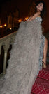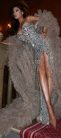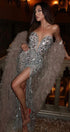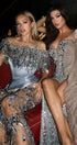 ДЪЛГА РОКЛЯ И НАМЕТАЛО ANDROMEDA ПАЙЕТИ ТЮЛ БРОКАТ СРЕБЪРЕН С НЮД