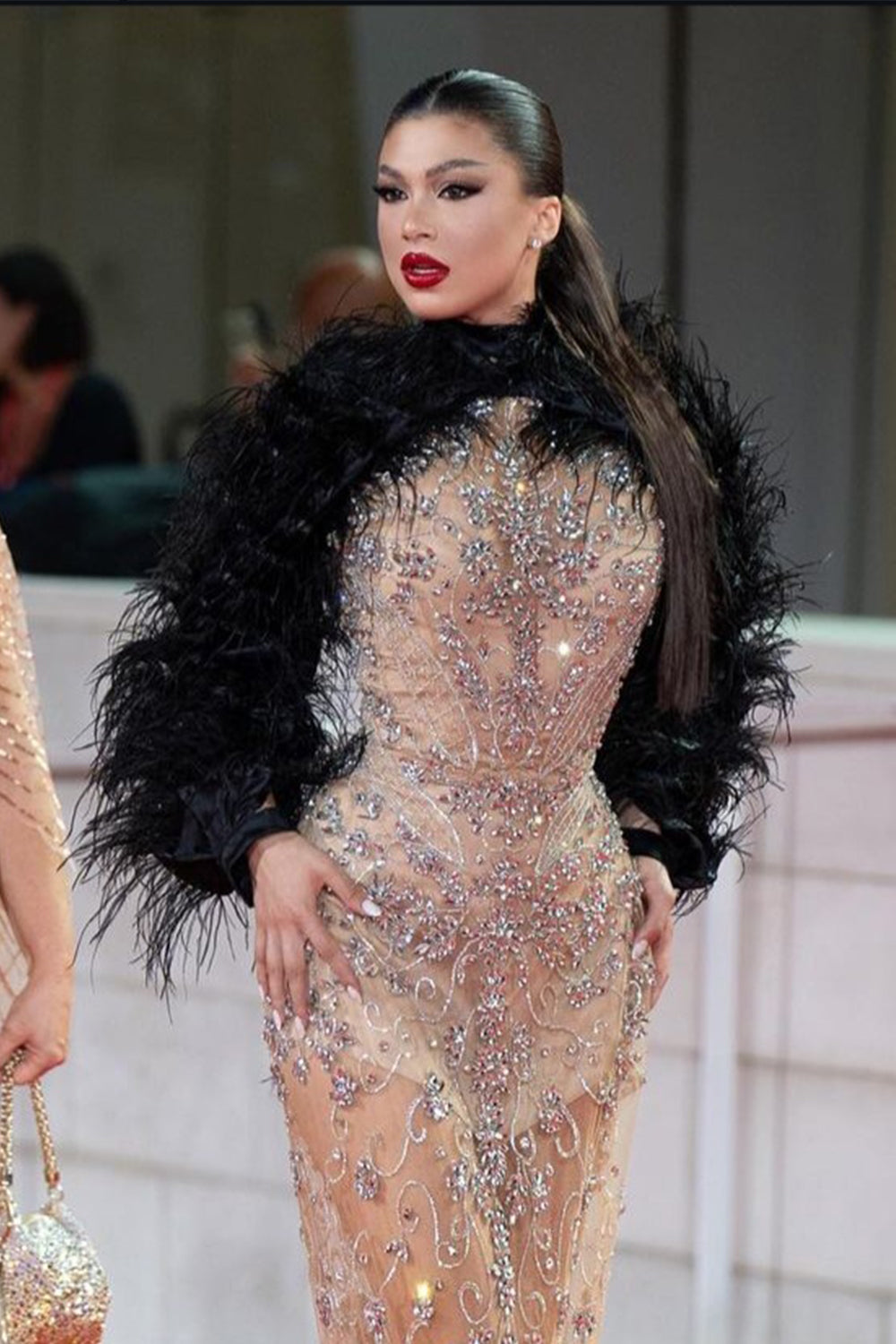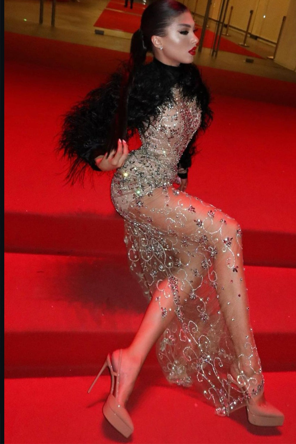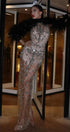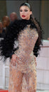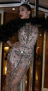 ДЪЛГА РОКЛЯ TERRY КАМЪНИ ПЕРА ЧЕРЕН С НЮД