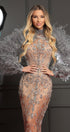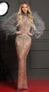 ДЪЛГА РОКЛЯ TERRY КАМЪНИ САТЕН ПЕРА СРЕБЪРЕН С НЮД