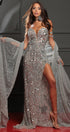 ДЪЛЪГ СЕТ РОКЛЯ И ШАЛ ELMIRA КАМЪНИ САТЕН СРЕБЪРЕН