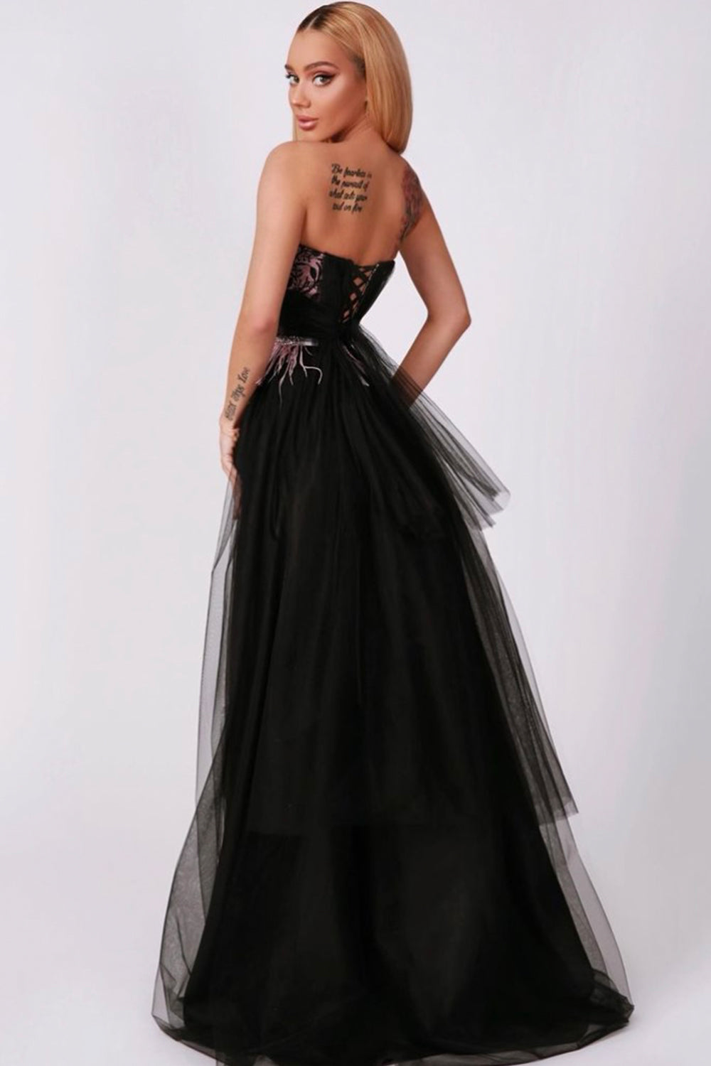 Моля, не поставяйте роклята в пералня с центрофуга или в сушилня, както и не прилагайте агресивно третиране, за да запазите нейния луксозен силует и качество.