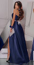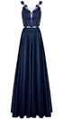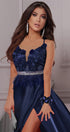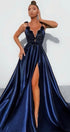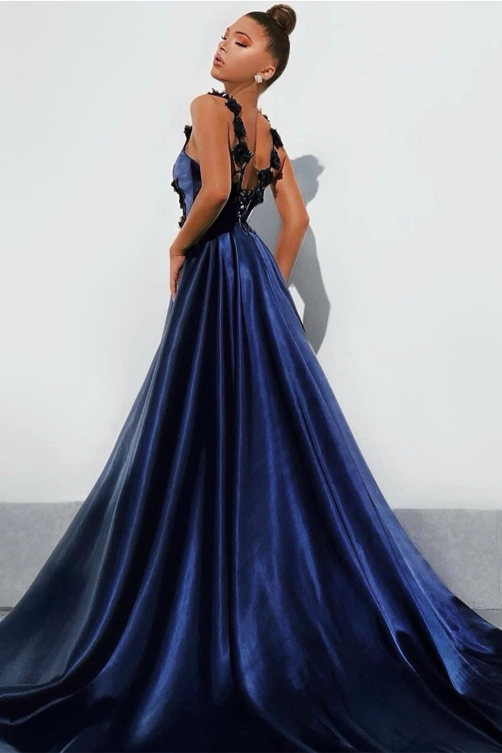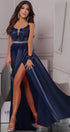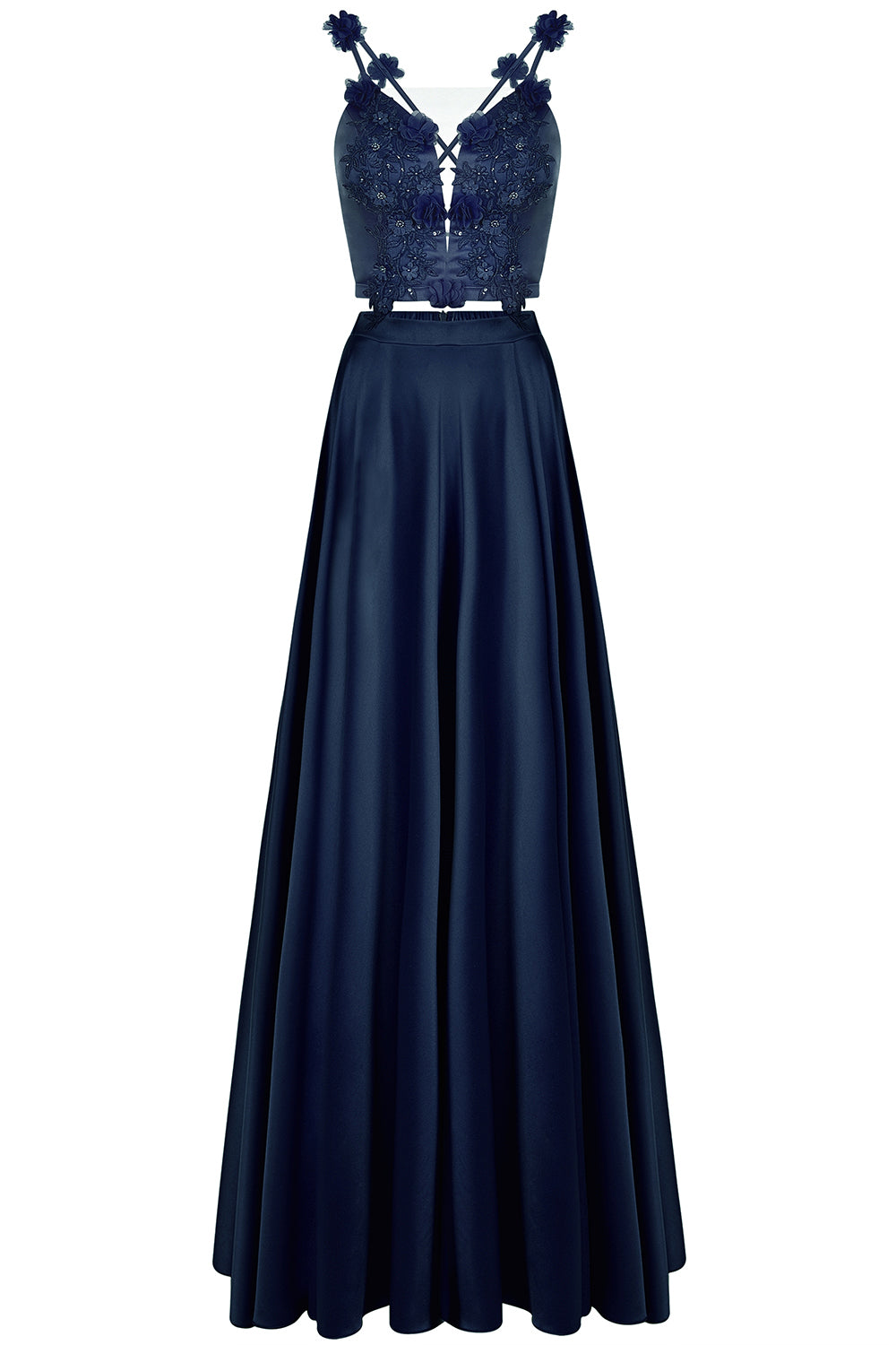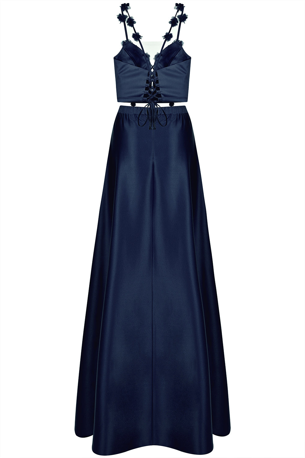 ДЪЛЪГ СЕТ 2 ЧАСТИ ТОП С ПОЛА JASMINE САТЕН ДАНТЕЛА ТЪМНО СИН