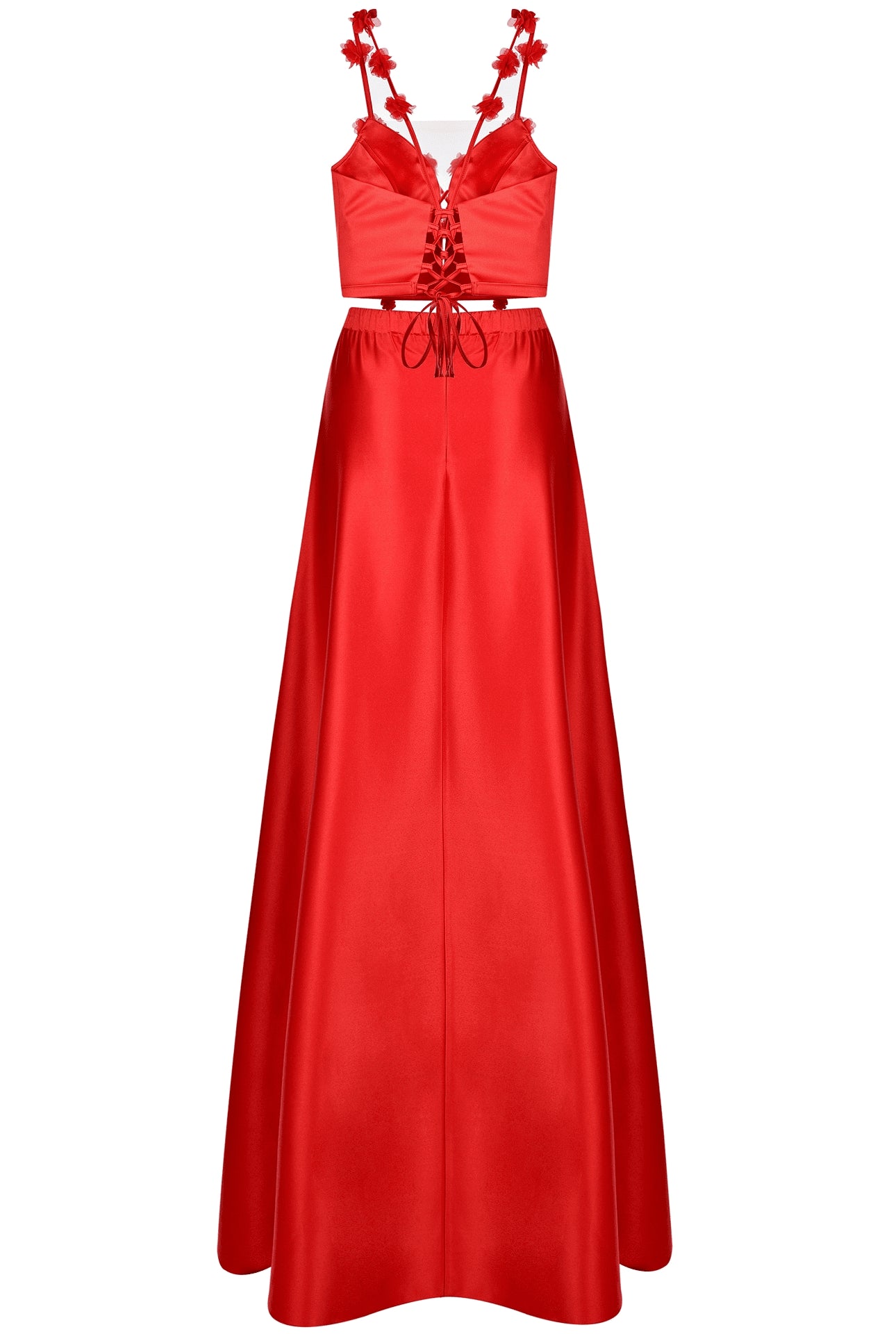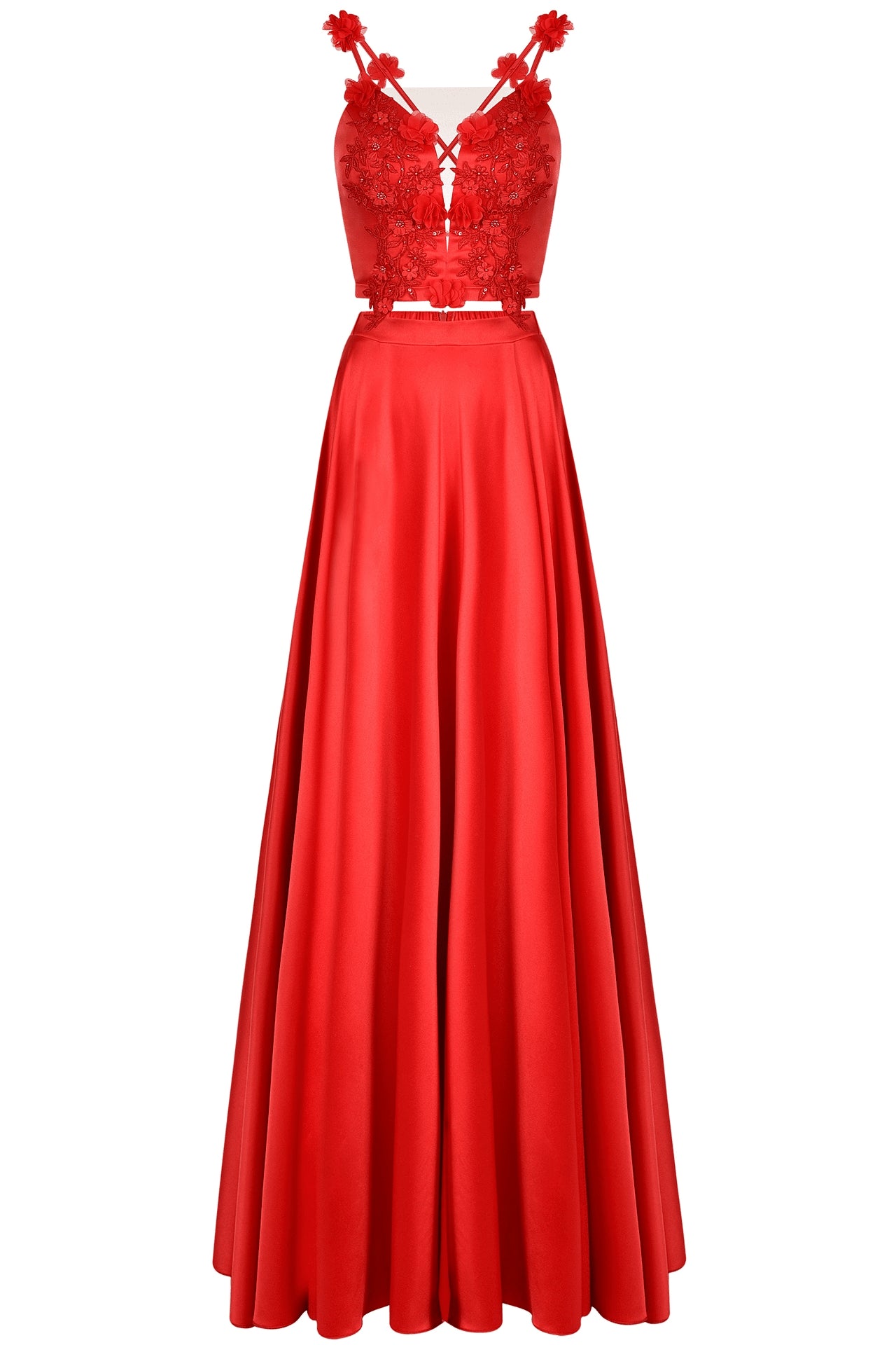ДЪЛЪГ СЕТ 2 ЧАСТИ ТОП С ПОЛА JASMINE САТЕН ЧЕРВЕН