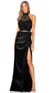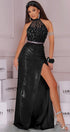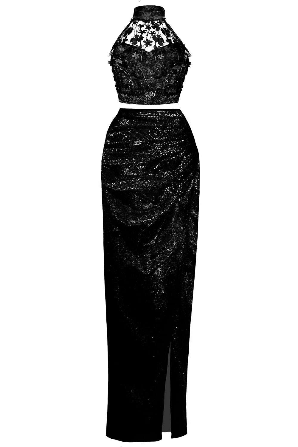 ДЪЛЪГ СЕТ 2 ЧАСТИ ТОП С ПОЛА NIKKIE ДАНТЕЛА ТРИКО ЛАМЕ ЧЕРЕН