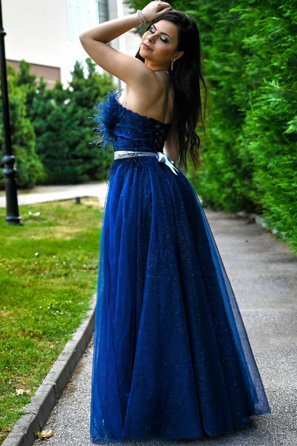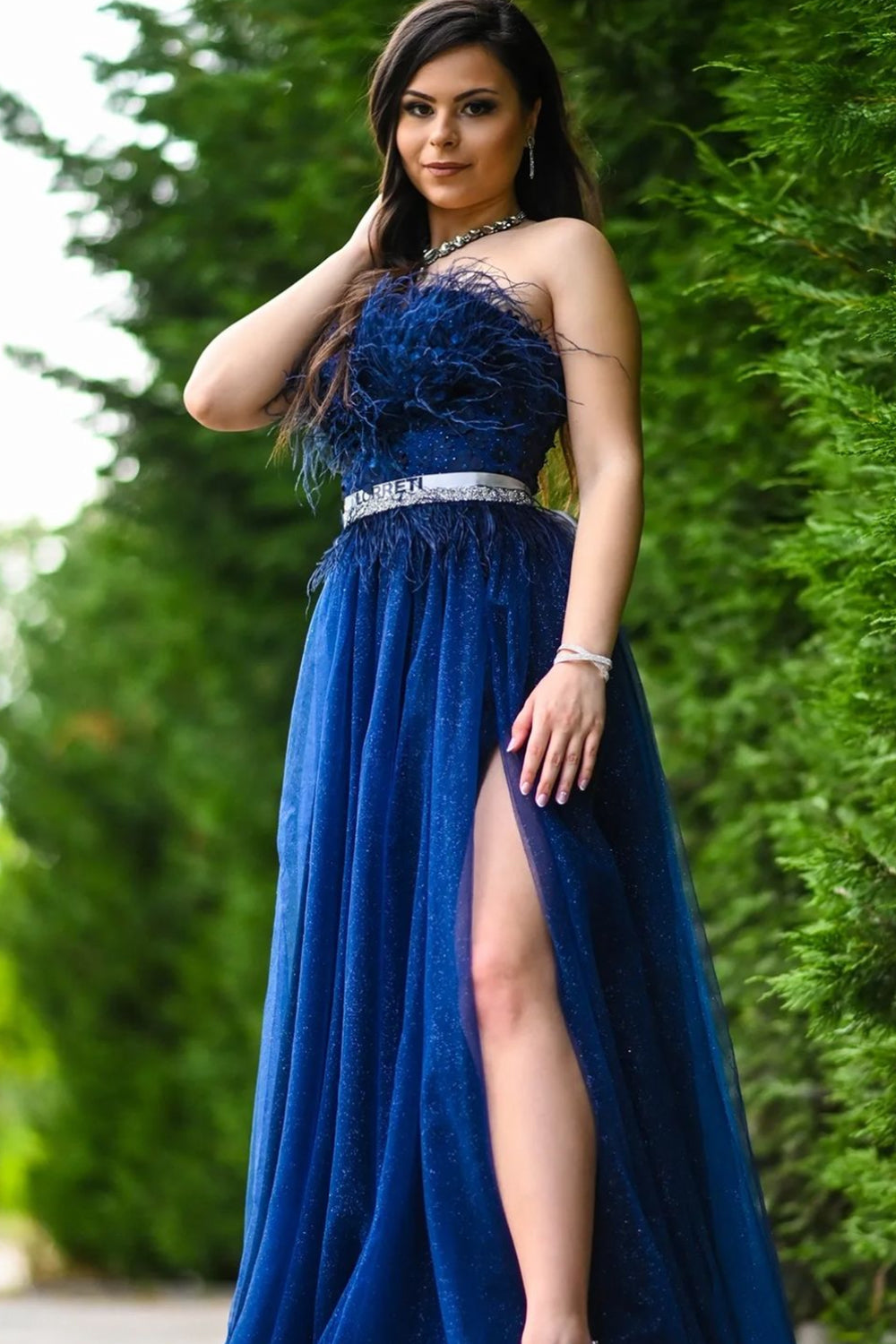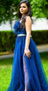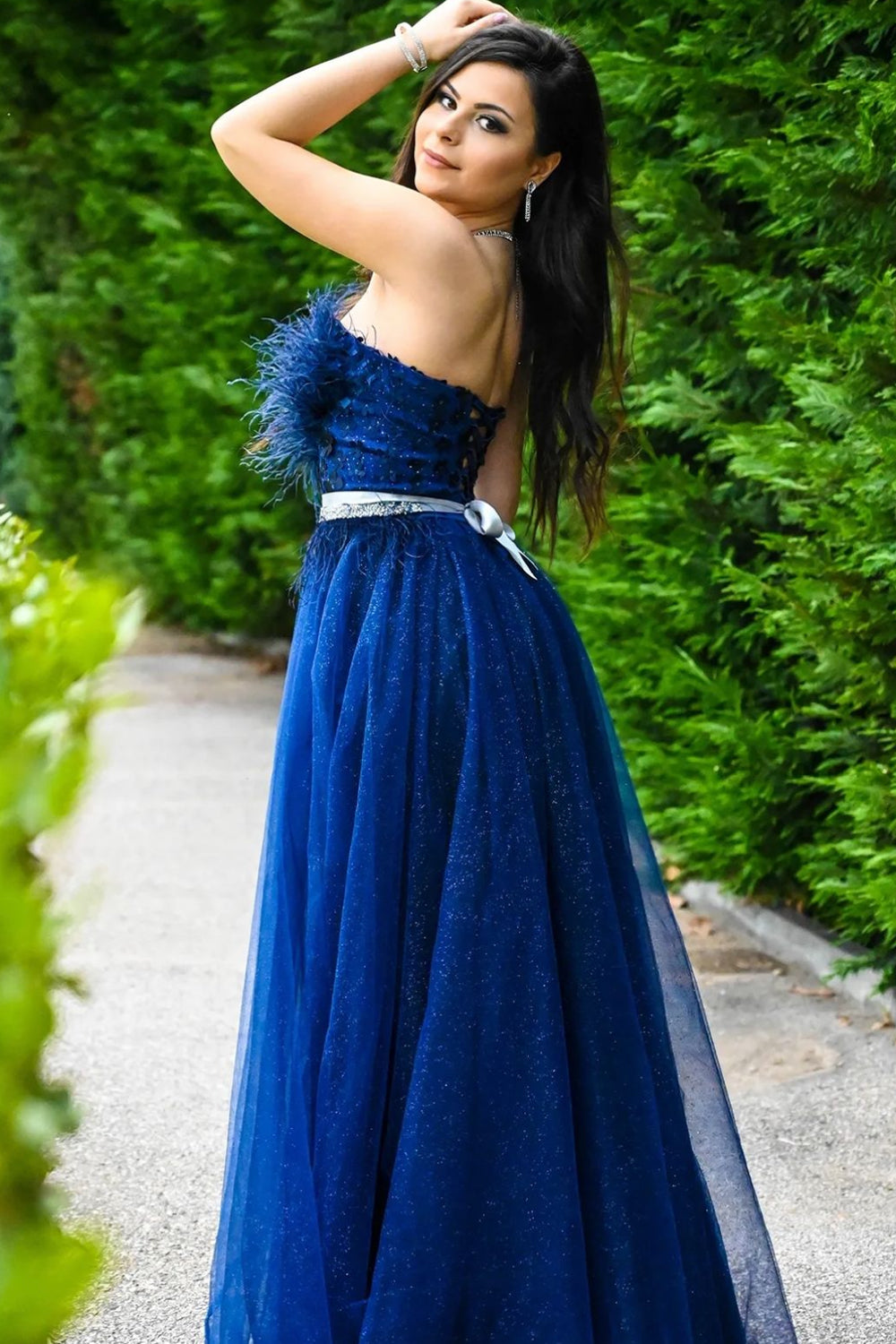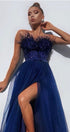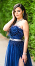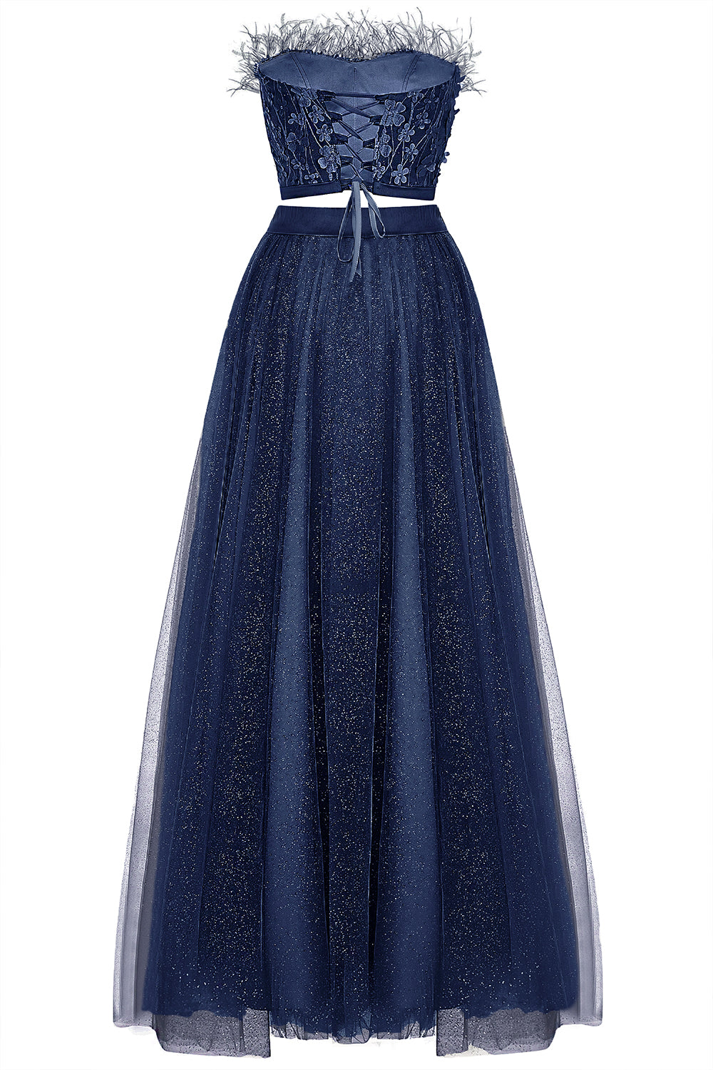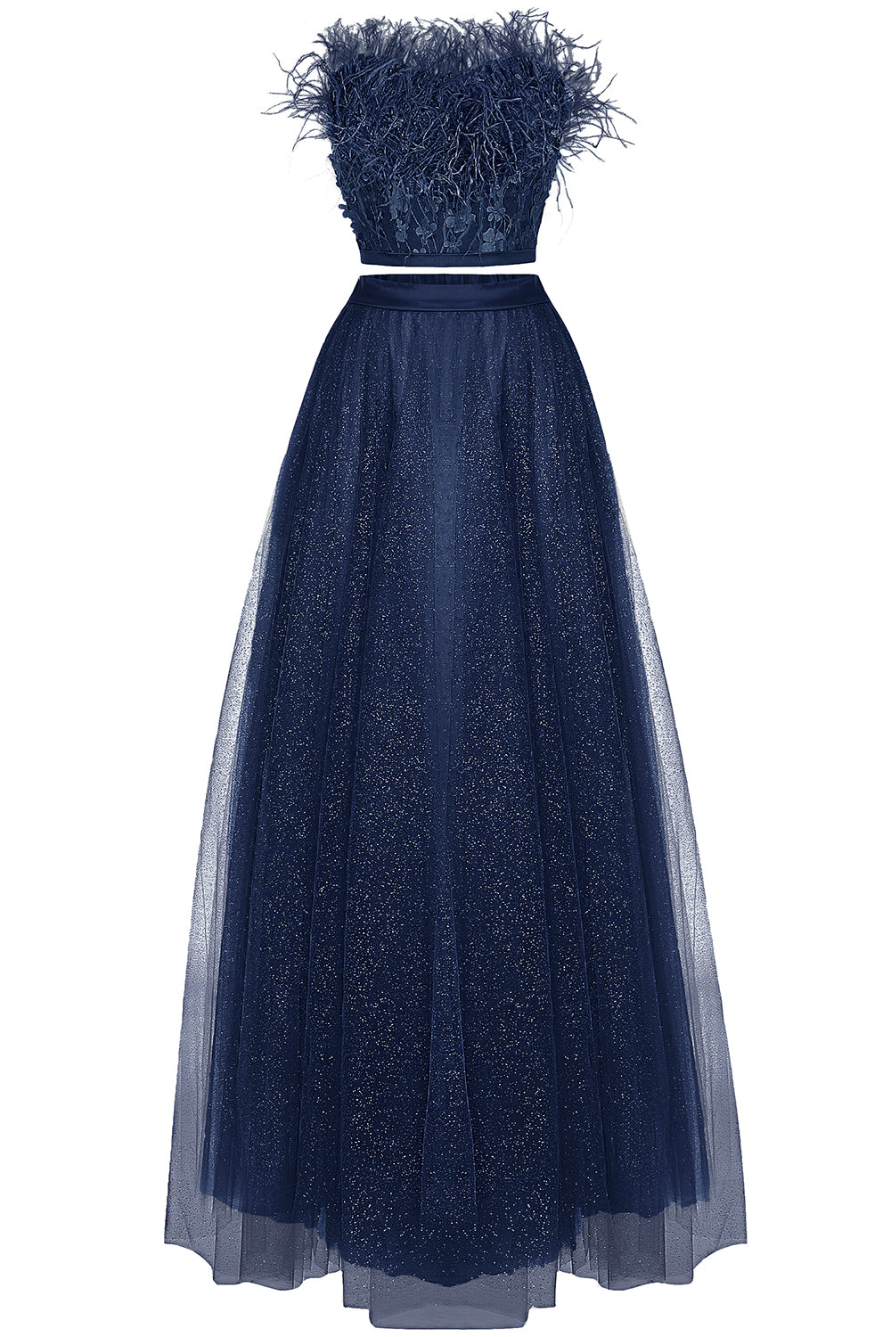 ДЪЛЪГ СЕТ 2 ЧАСТИ ТОП С ПОЛА PENELOPE ПЕРА ТЮЛ БРОКАТ ТЪМНО СИН
