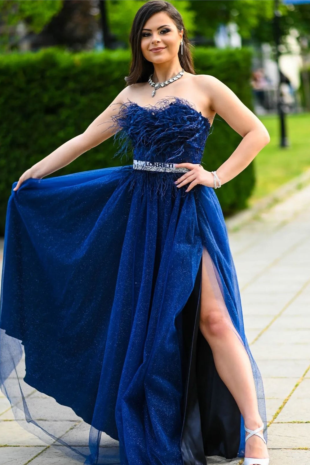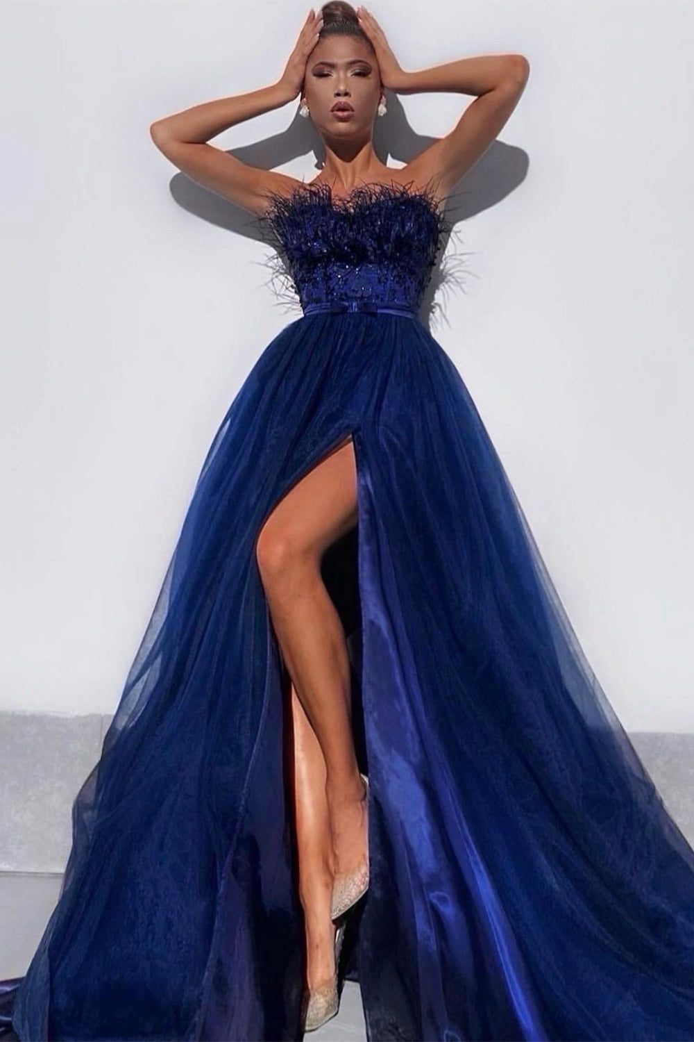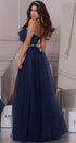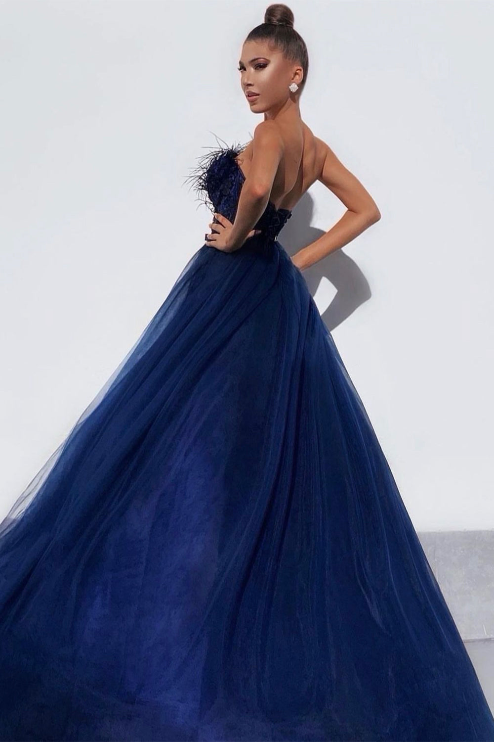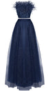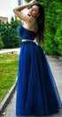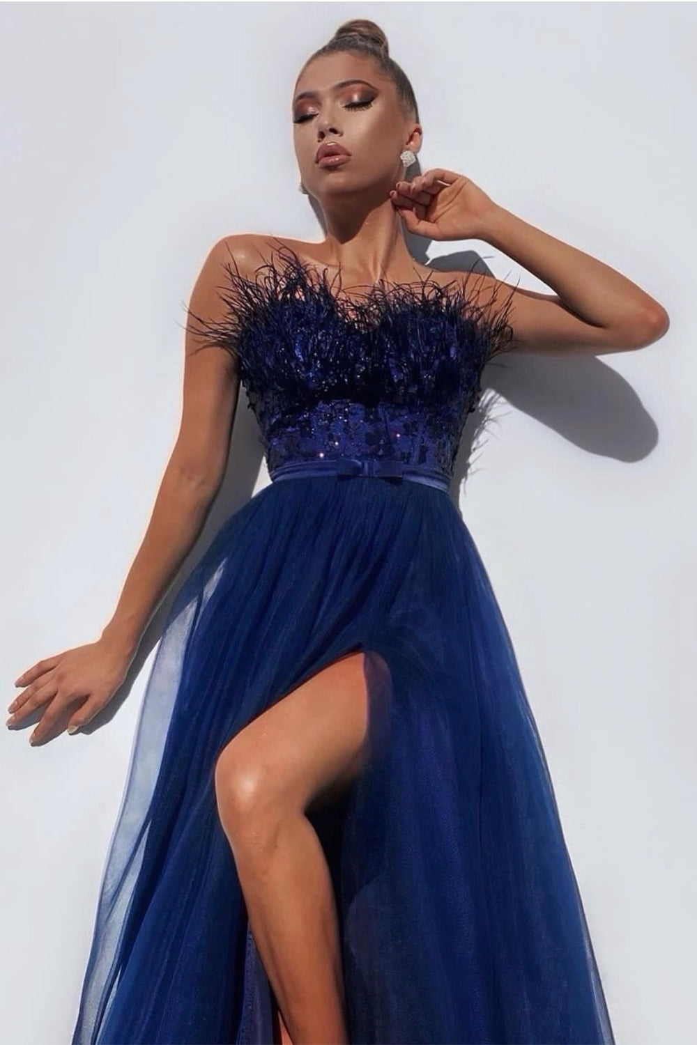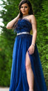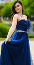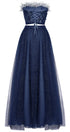 ДЪЛЪГ СЕТ 2 ЧАСТИ ТОП С ПОЛА PENELOPE ПЕРА ТЮЛ БРОКАТ ТЪМНО СИН