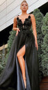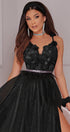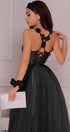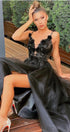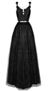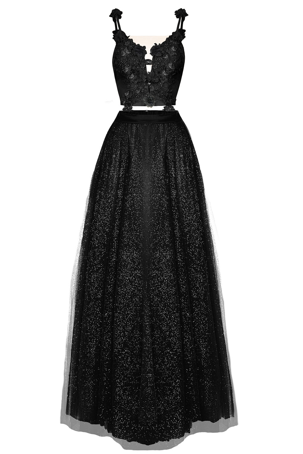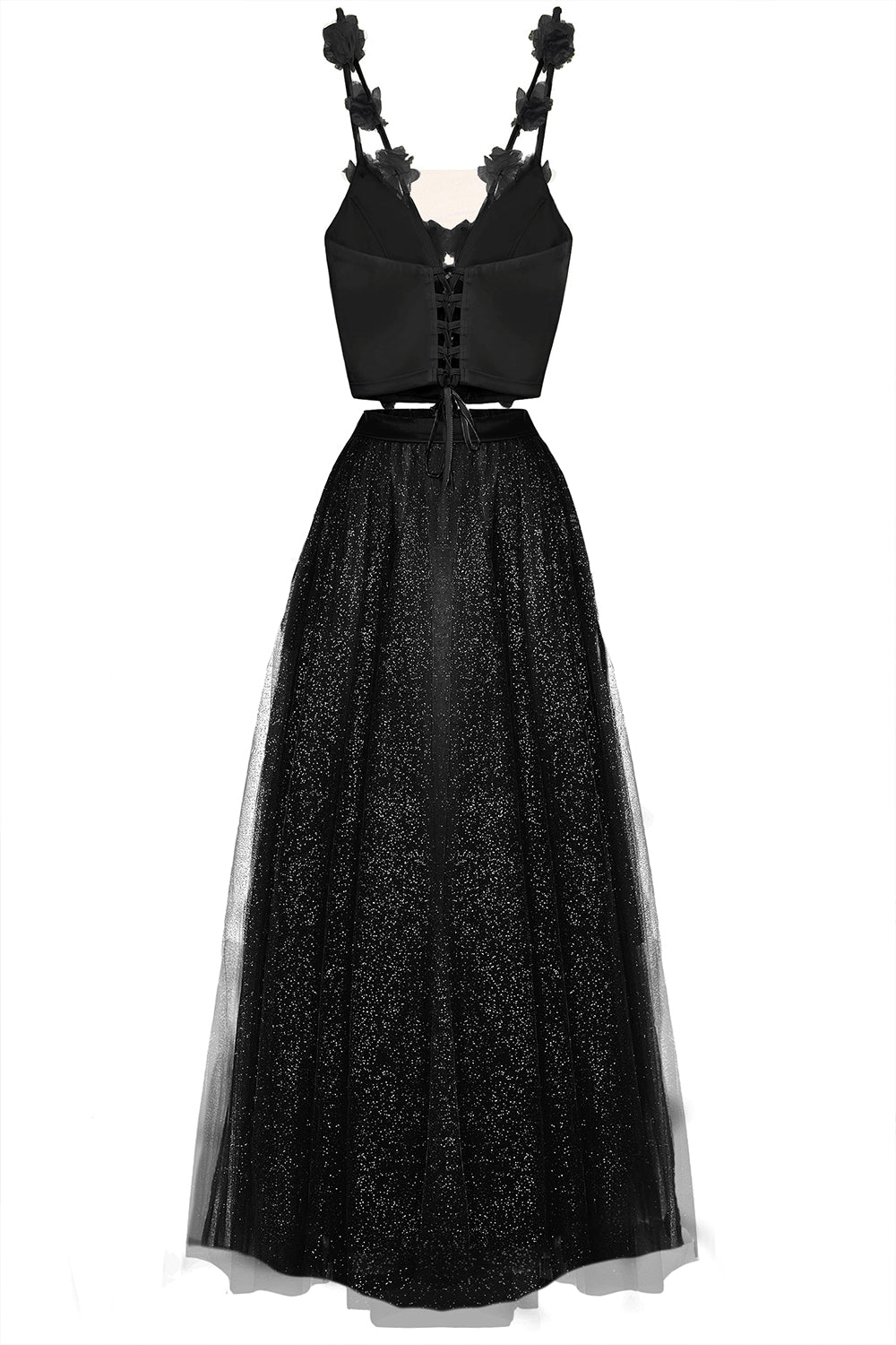 ДЪЛЪГ СЕТ 2 ЧАСТИ ТОП С ПОЛА PERLA ДАНТЕЛА ТЮЛ БРОКАТ ЧЕРЕН