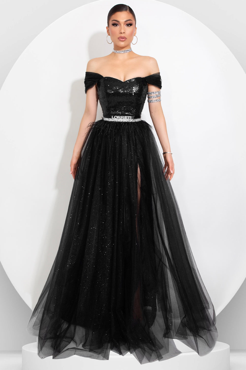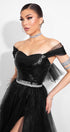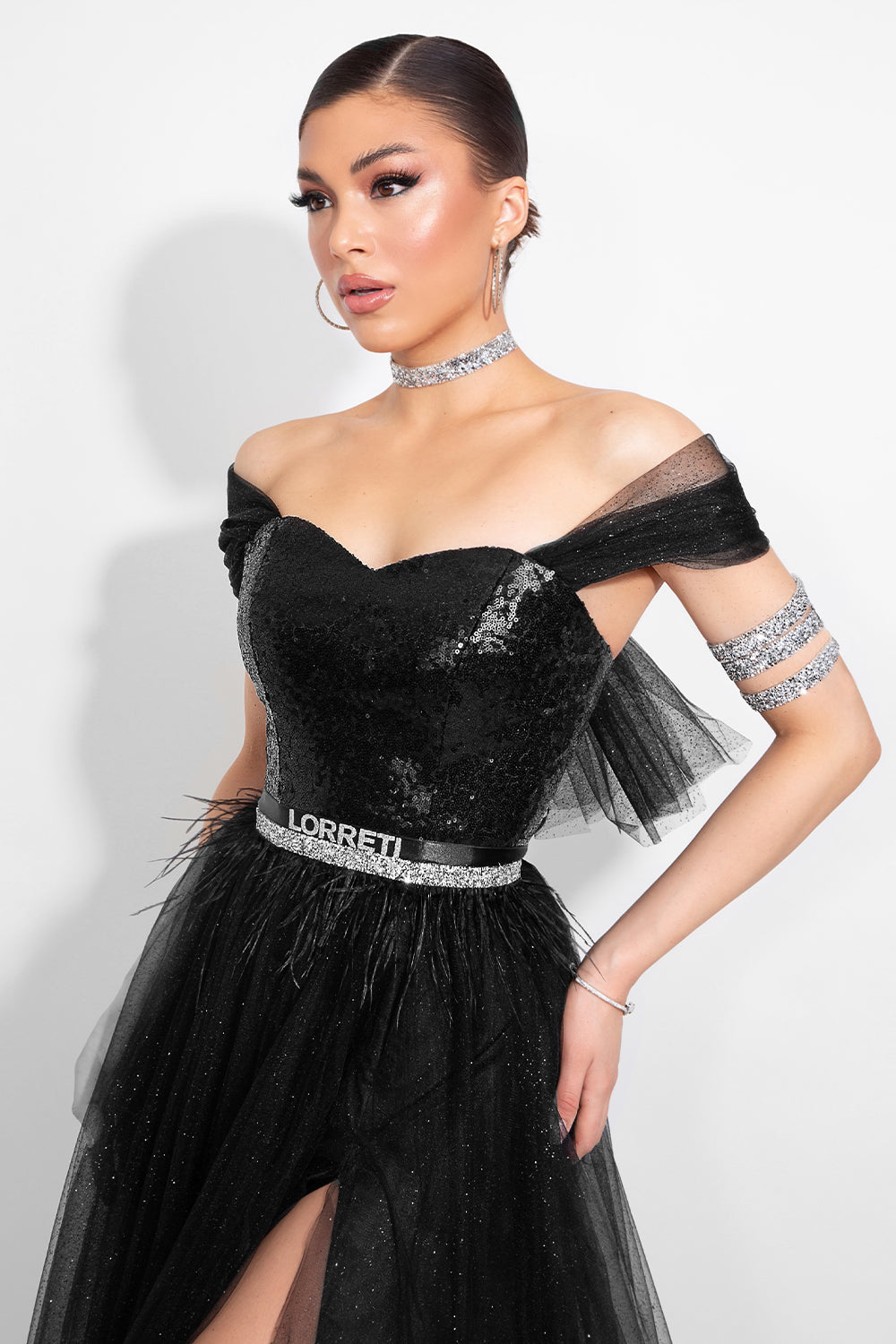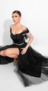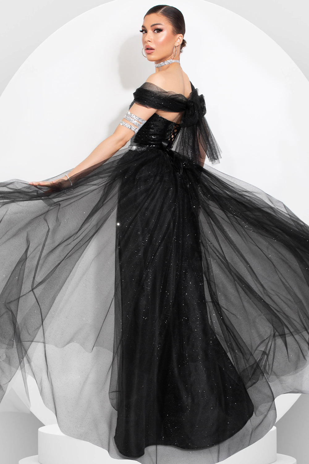 ДЪЛЪГ СЕТ 2 ЧАСТИ ТОП С ПОЛА REGINA ПАЙЕТИ ТЮЛ БРОКАТ ЧЕРЕН