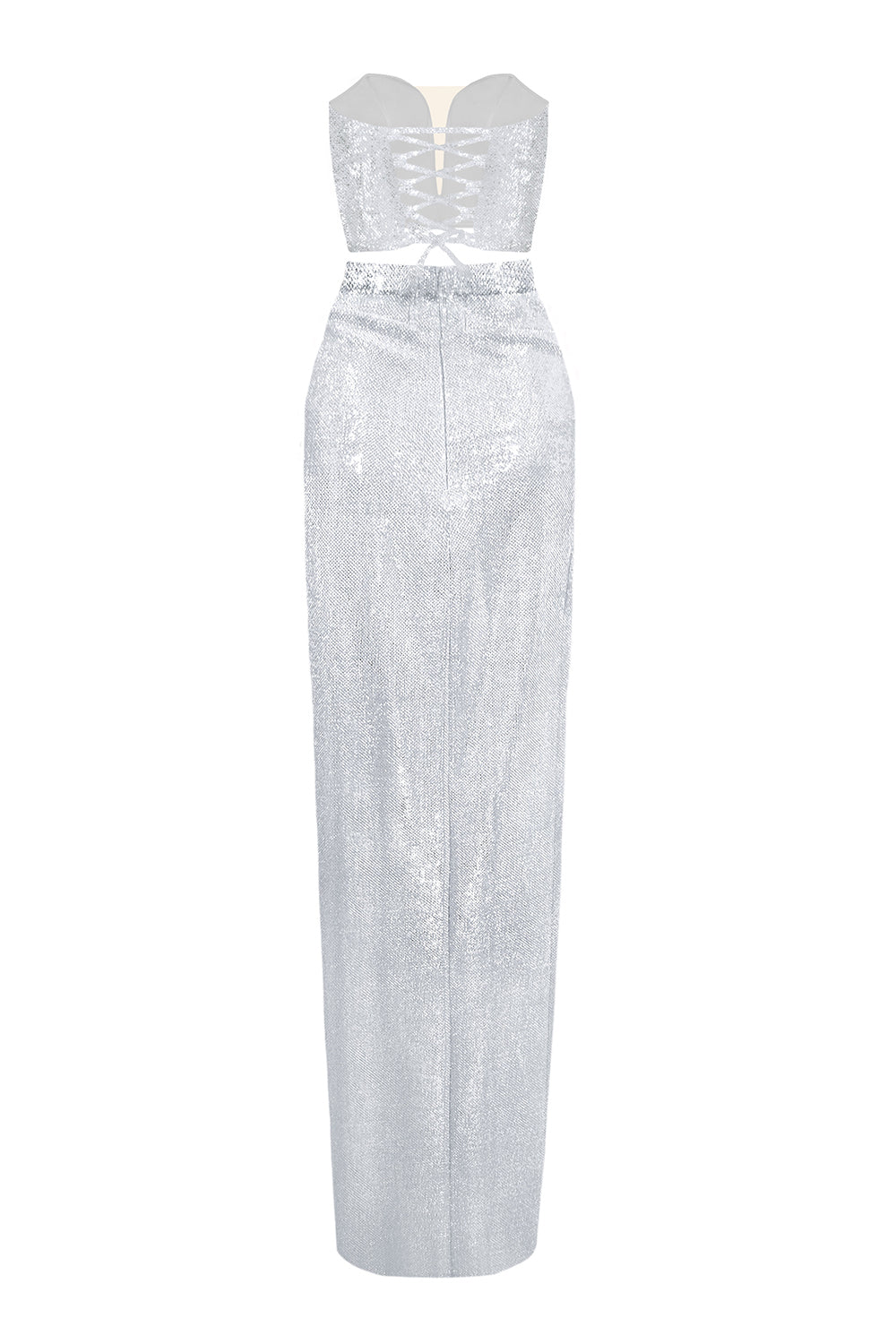 ДЪЛЪГ СЕТ 2 ЧАСТИ ТОП С ПОЛА SIANA ЛАМЕ СРЕБЪРЕН