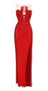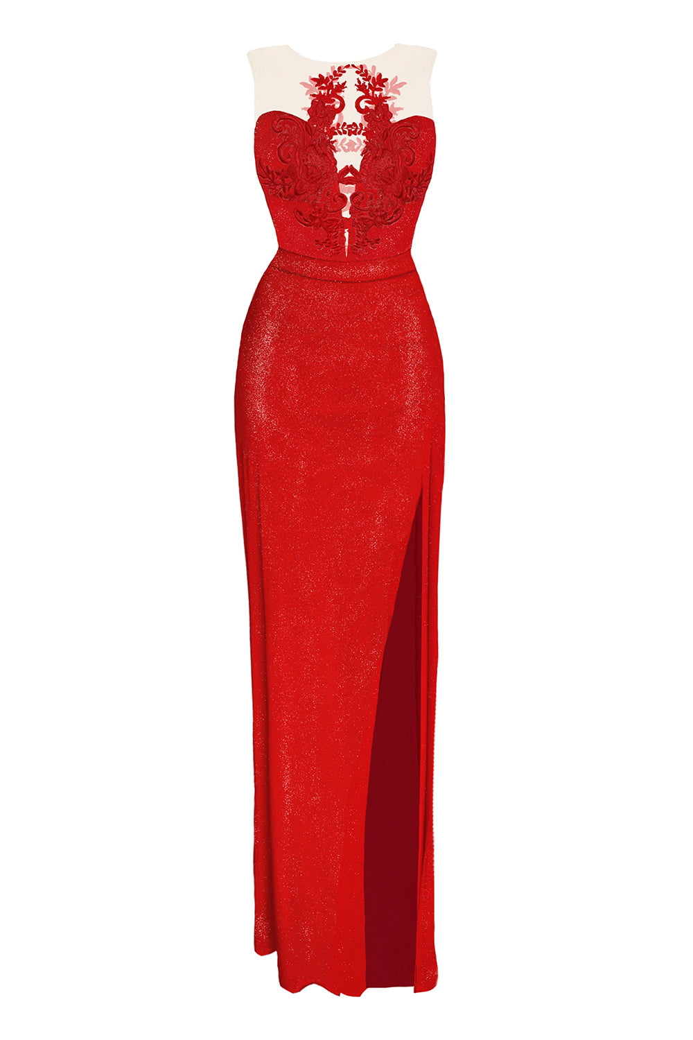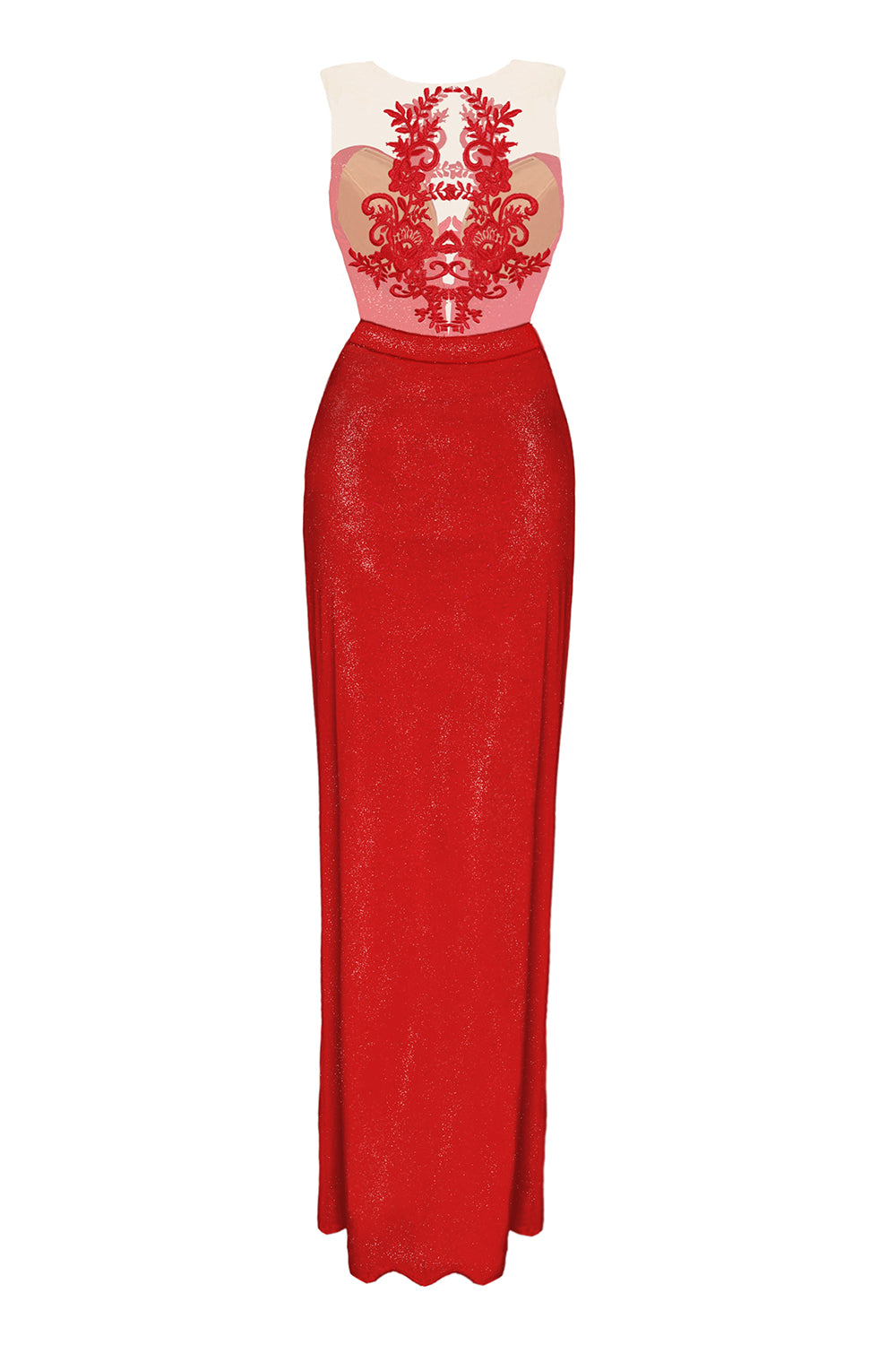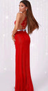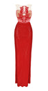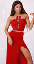 ДЪЛЪГ СЕТ 2 ЧАСТИ ТОП С ПОЛА SINTIA ТРИКО БРОКАТ ДАНТЕЛА ЧЕРВЕН