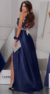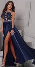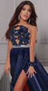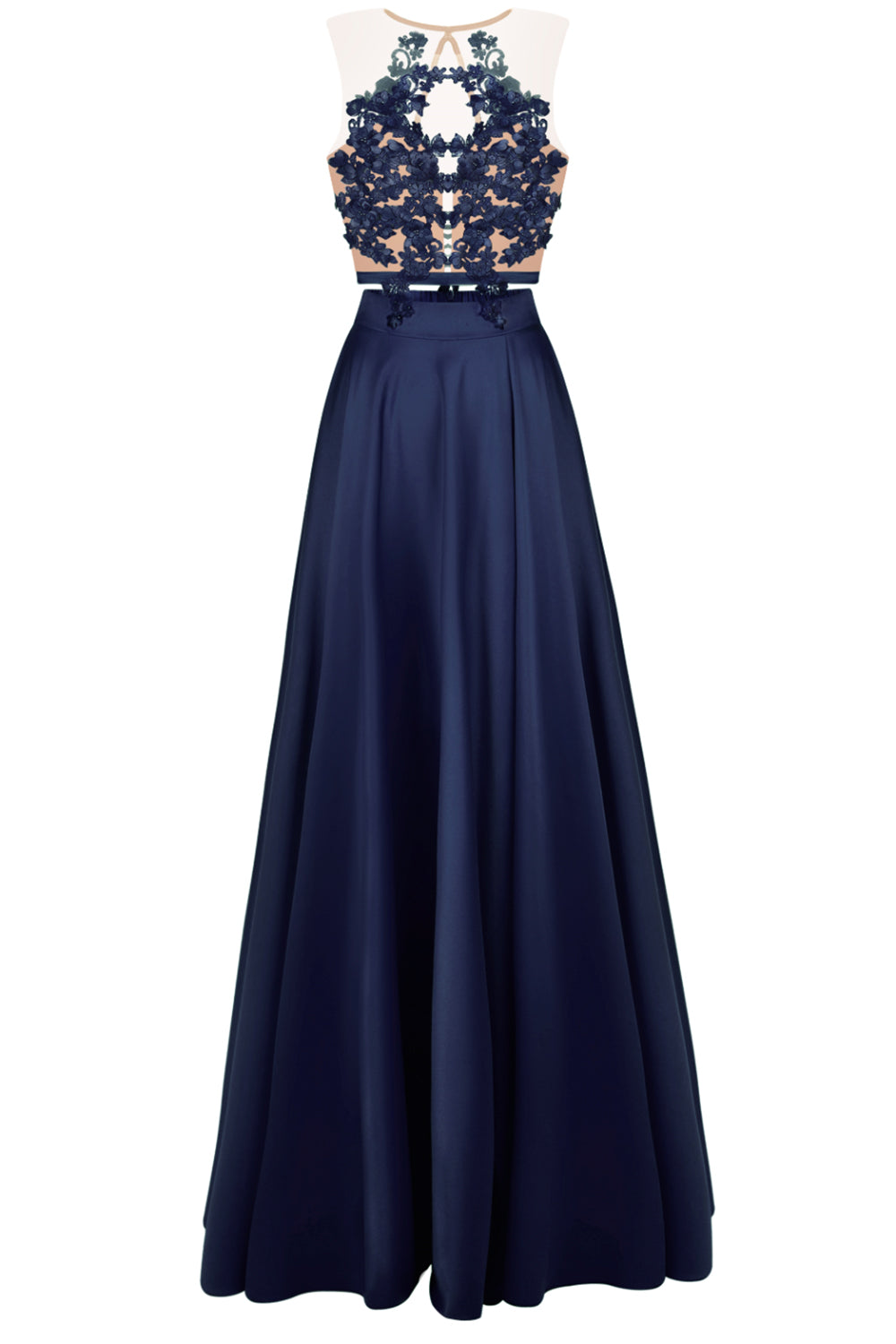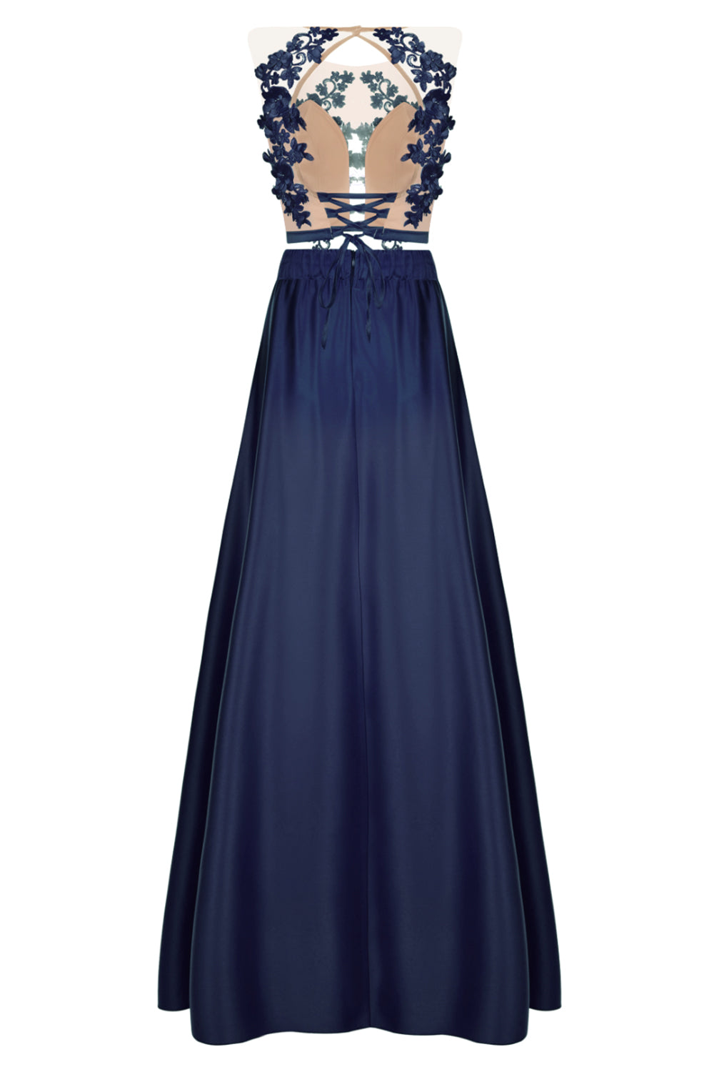 ДЪЛЪГ СЕТ 2 ЧАСТИ ТОП С ПОЛА MALIA ДАНТЕЛА САТЕН ТЪМНО СИН
