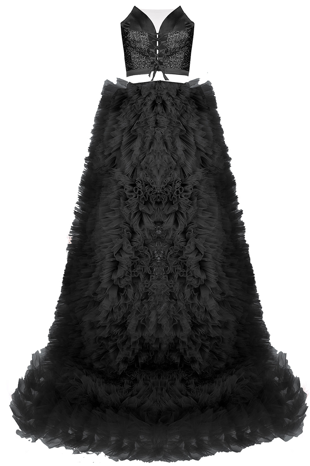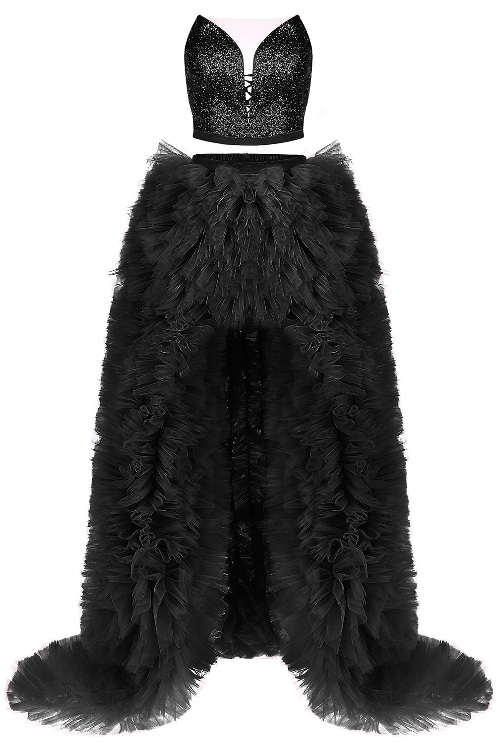 ДЪЛЪГ СЕТ 3 ЧАСТИ ТОП С ПОЛА APHRODITE ТЮЛ БРОКАТ ЧЕРЕН