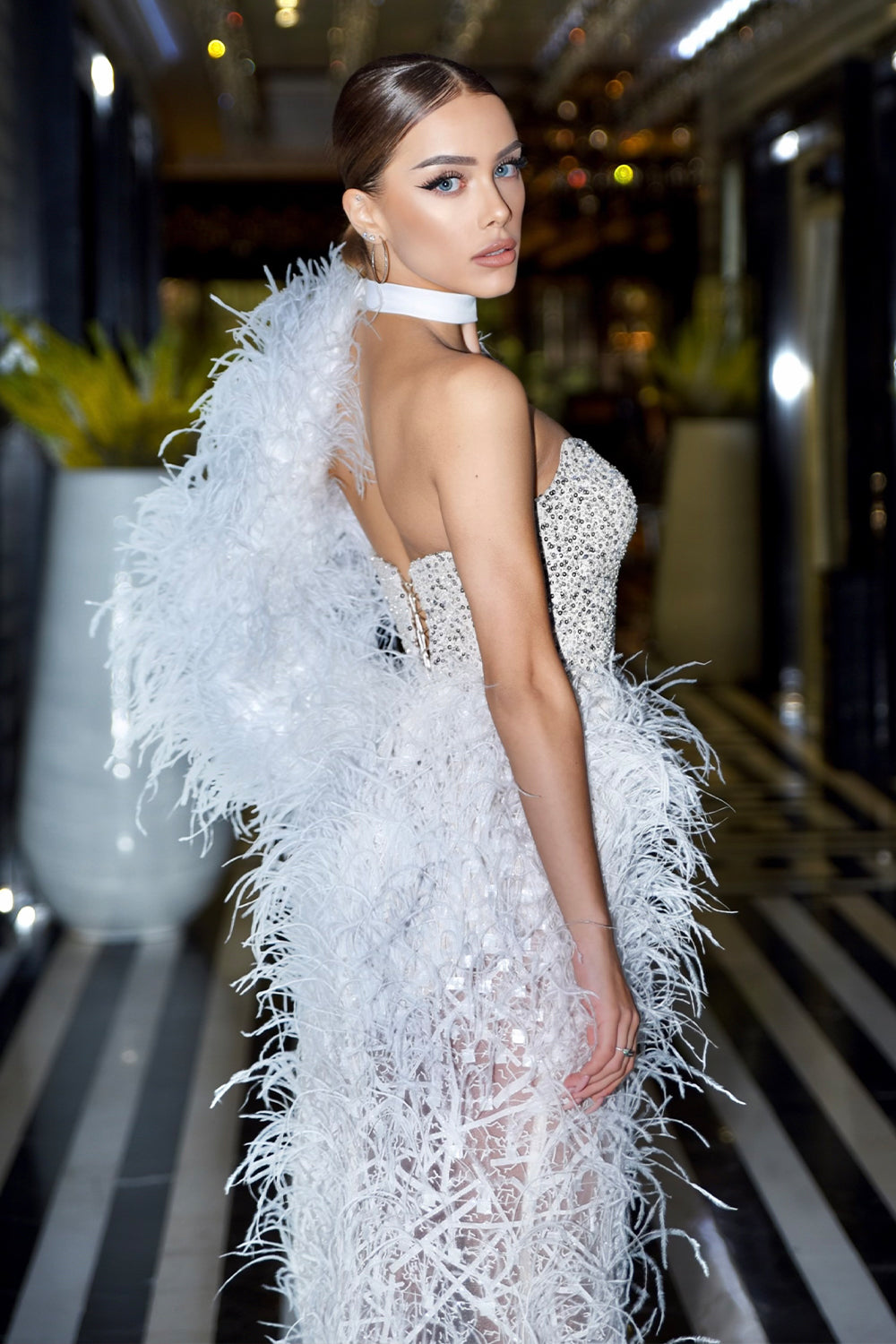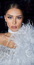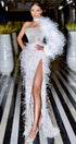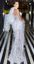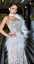 ДЪЛЪГ СЕТ 3 ЧАСТИ ТОП С ПОЛА TRINITY ПАЙЕТИ ДАНТЕЛА ГЛИТЕР ПЕРА СРЕБЪРЕН БЯЛ С НЮД