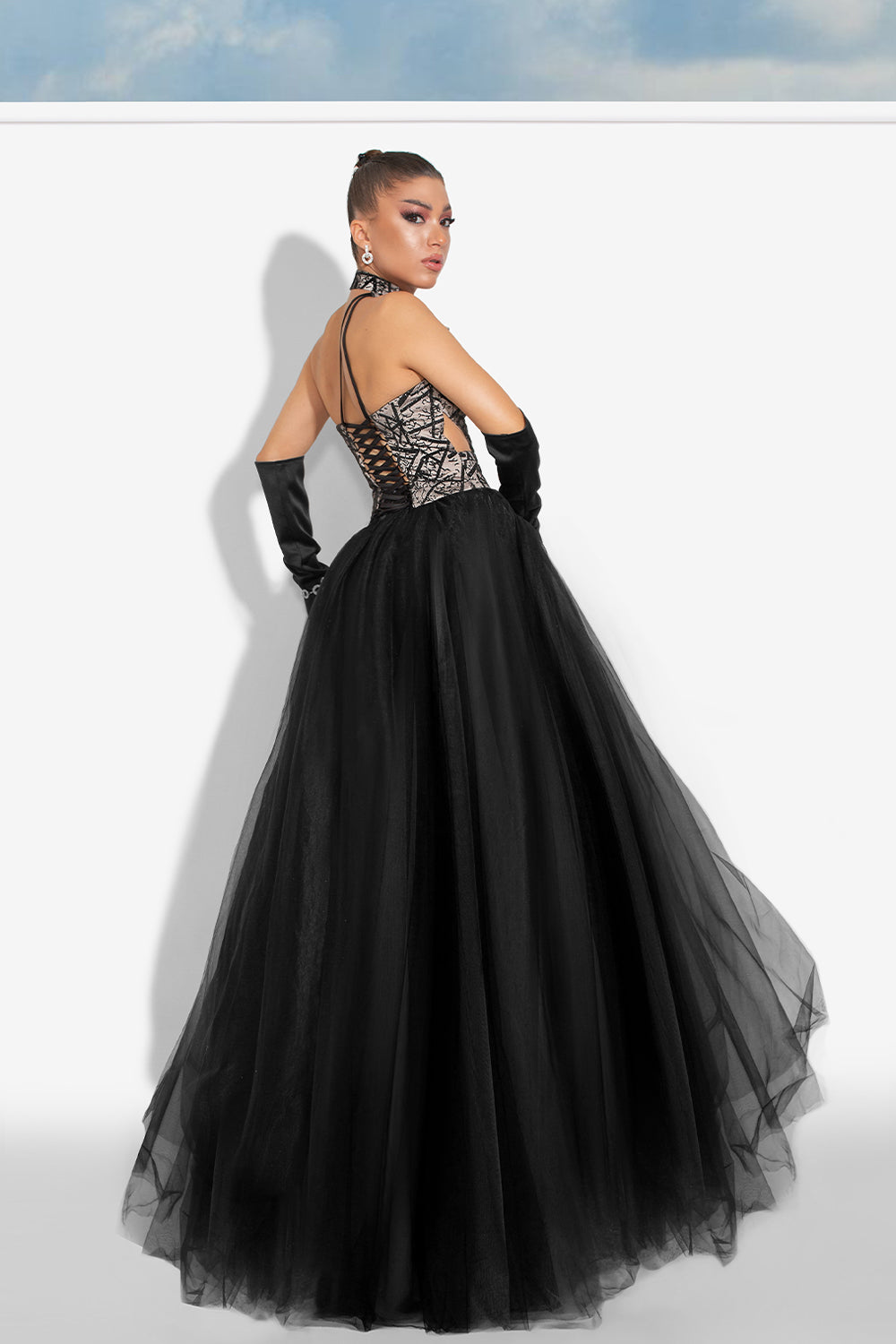 ДЪЛЪГ СЕТ 3 ЧАСТИ ТОП С ПОЛА WILMA ДАНТЕЛА ГЛИТЕР ТЮЛ ЧЕРЕН С НЮД