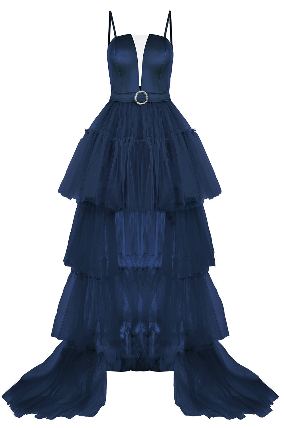 ДЪЛЪГ СЕТ 3 ЧАСТИ ТОП С ПОЛА AURORA САТЕН ТЮЛ ТЪМНО СИН