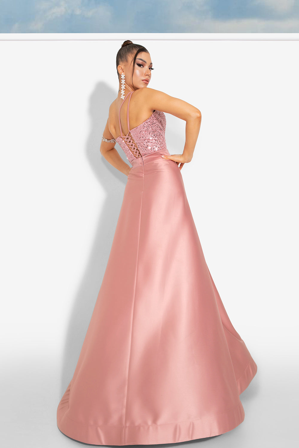 ДЪЛЪГ СЕТ 2 ЧАСТИ ТОП С ПОЛА ABBY ПАЙЕТИ САТЕН ПУДРА