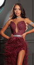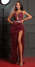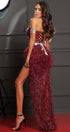 ДЪЛЪГ СЕТ ТОП С ПОЛА ADA ДАНТЕЛА ГЛИТЕР ПЕРА БОРДО