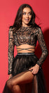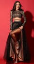 ДЪЛЪГ СЕТ ТОП С ПОЛА ADARA ДАНТЕЛА ГЛИТЕР ТЮЛ БРОКАТ ЧЕРЕН С НЮД