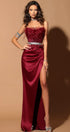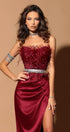 ДЪЛЪГ СЕТ ТОП С ПОЛА ADDISON ДАНТЕЛА ГЛИТЕР ПЕРА САТЕН БОРДО
