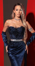 ДЪЛЪГ СЕТ ТОП С ПОЛА ADDISON ДАНТЕЛА ГЛИТЕР ПЕРА САТЕН ТЪМНО СИН