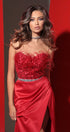 ДЪЛЪГ СЕТ ТОП С ПОЛА ADDISON ДАНТЕЛА ГЛИТЕР ПЕРА САТЕН ЧЕРВЕН