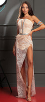 ДЪЛЪГ СЕТ ТОП С ПОЛА ADELINA ДАНТЕЛА ГЛИТЕР КАМЪНИ БЯЛ С НЮД