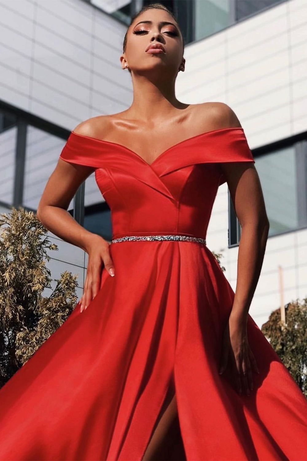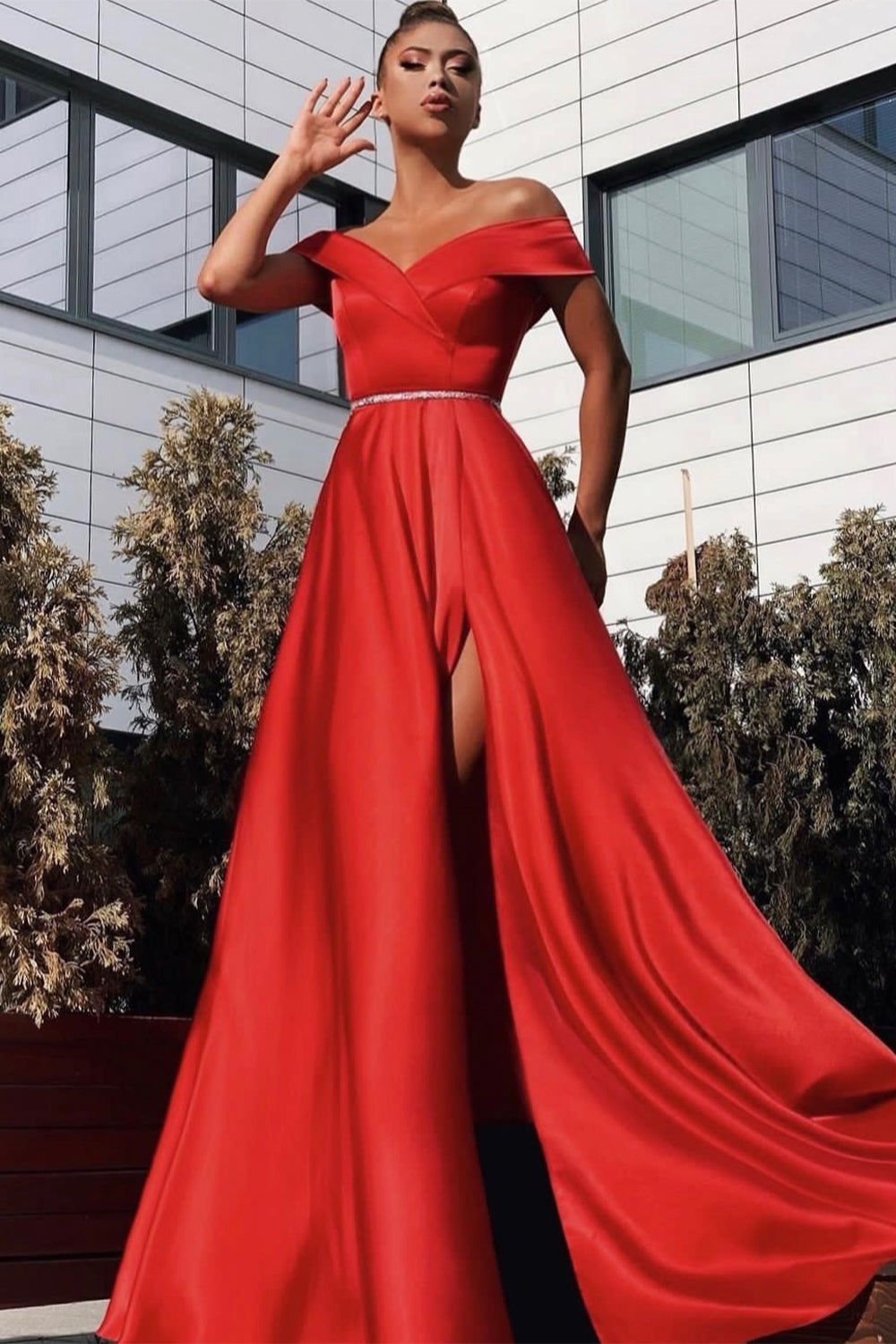 ДЪЛЪГ СЕТ ТОП С ПОЛА ALEXANDRA САТЕН ЧЕРВЕН