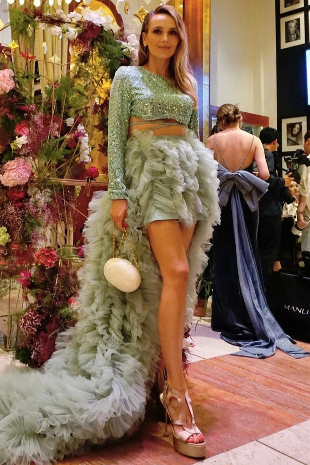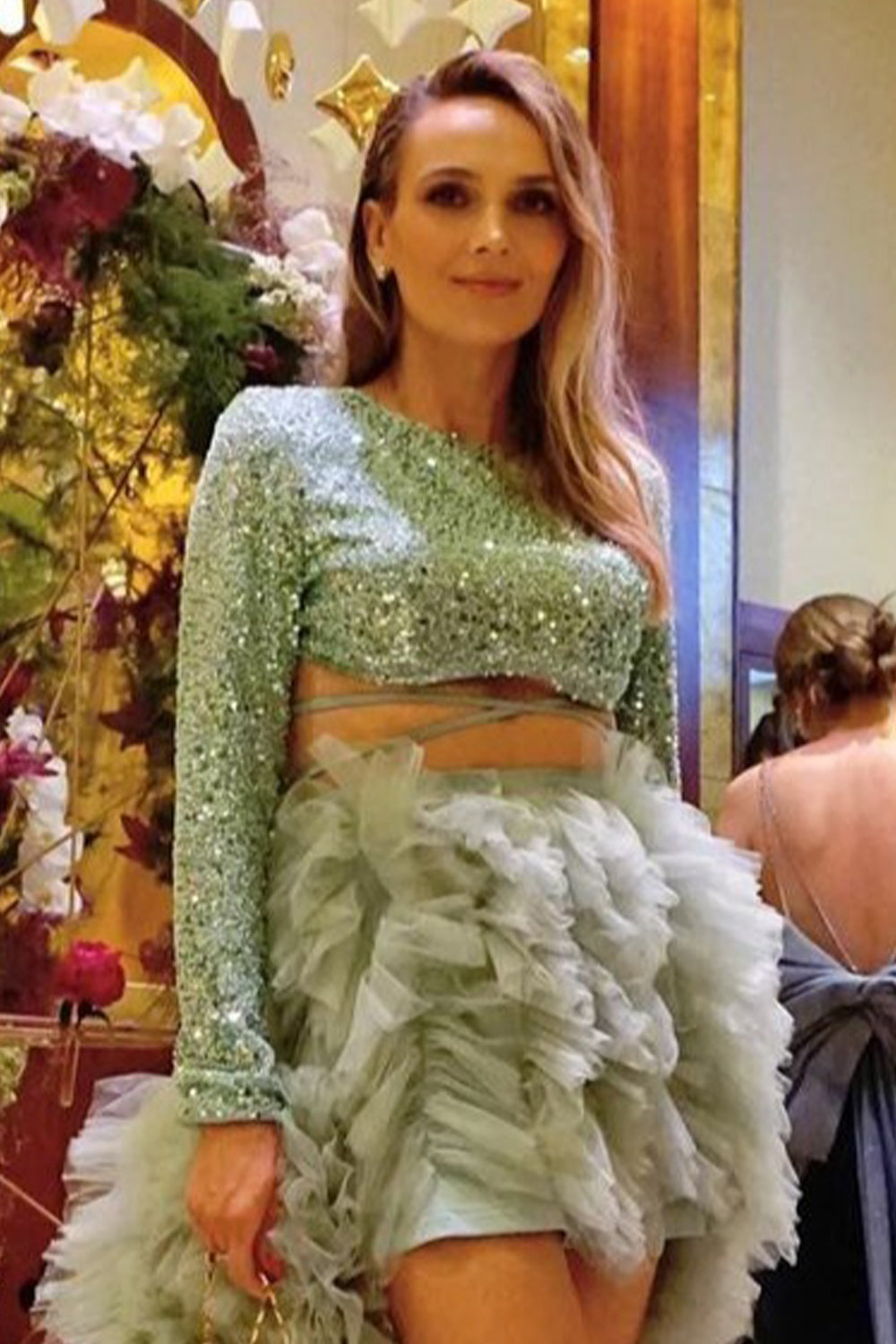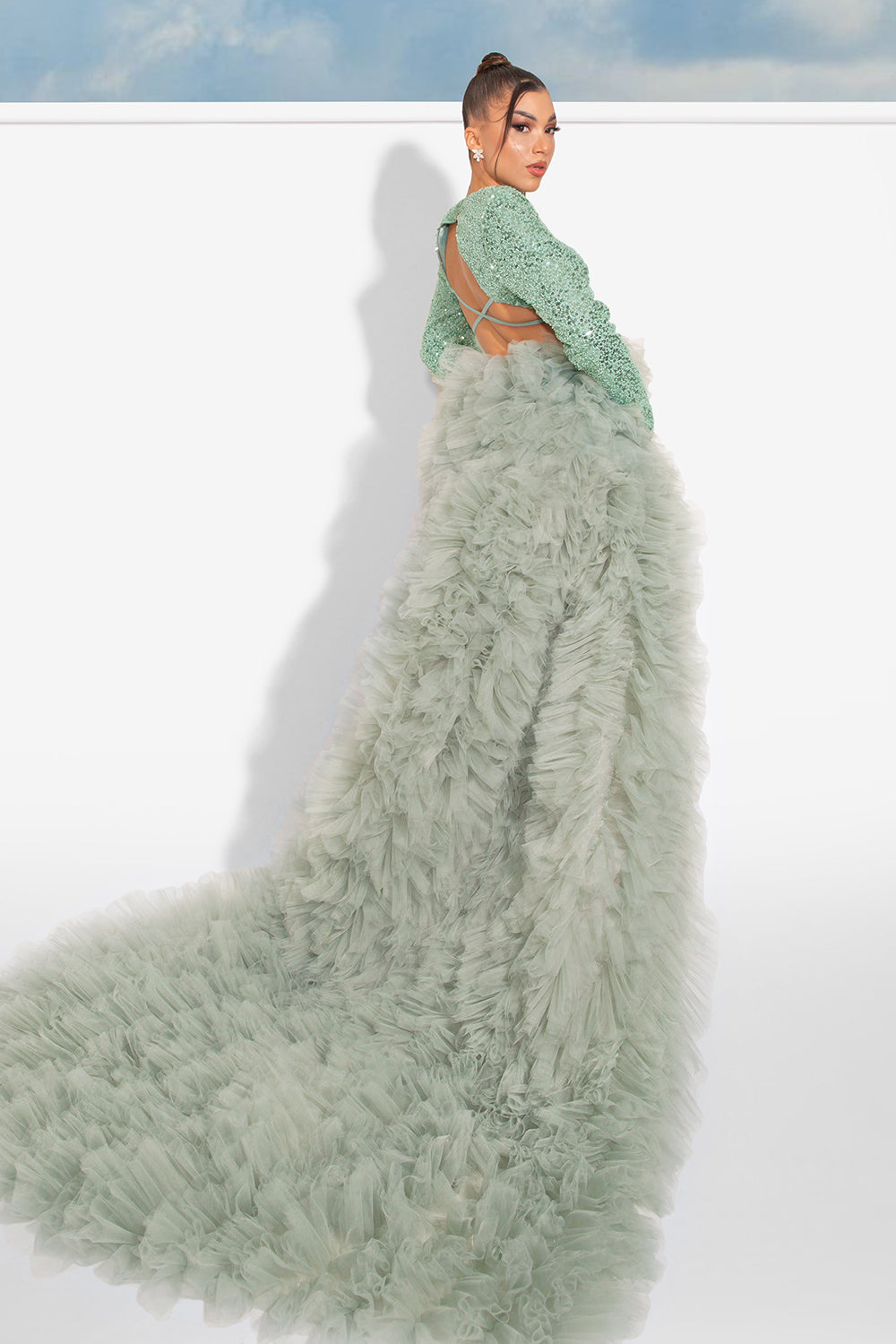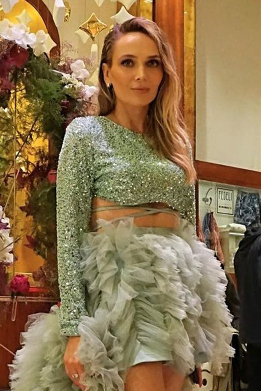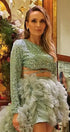 ДЪЛЪГ СЕТ 3 ЧАСТИ ТОП С ПОЛА ALEXIS ПАЙЕТИ ТЮЛ МЕНТА