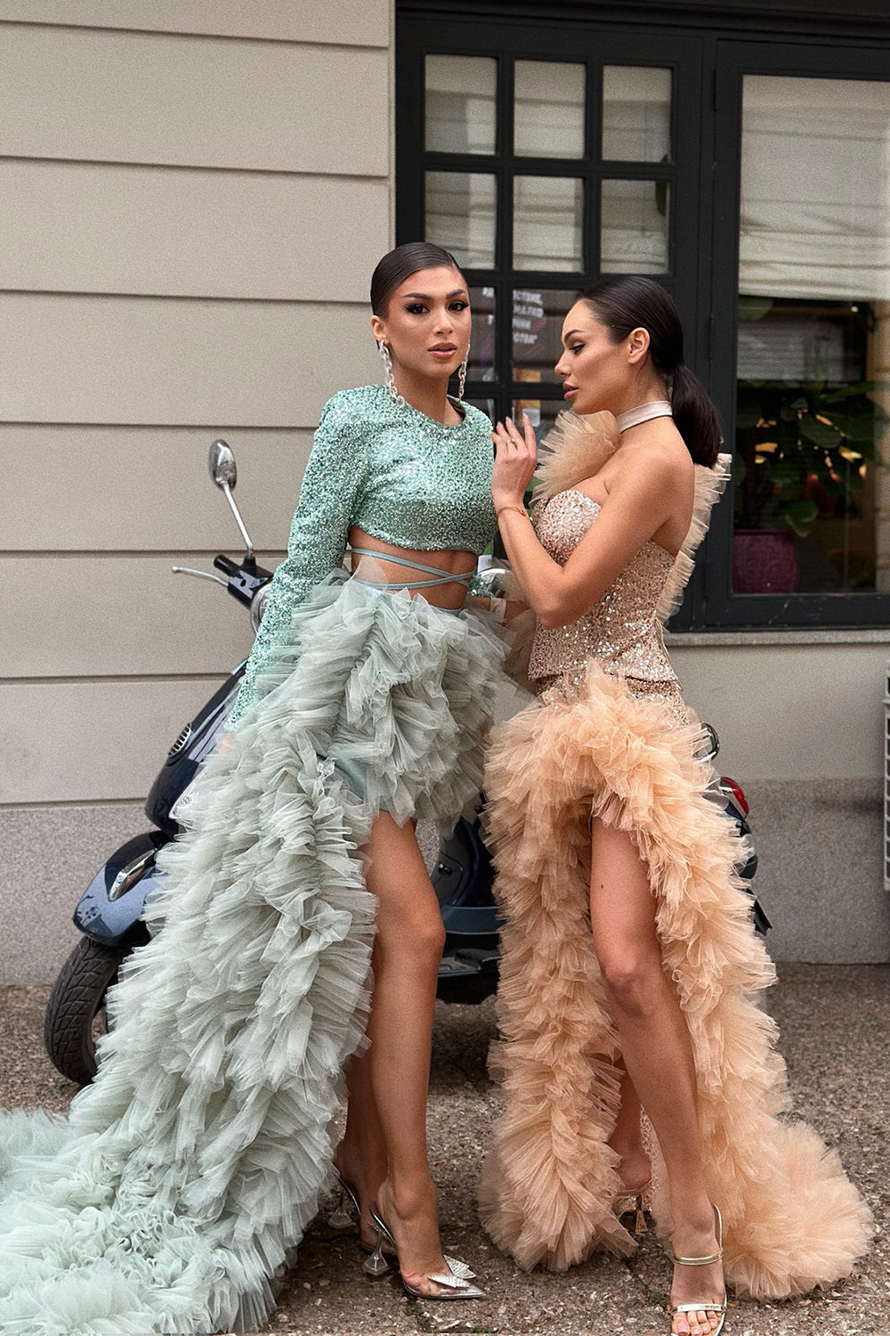 ✅ Моделите на LORRETI by Lora Lilova са разделени на горна и долна част – топ (бюстие) и пола или панталон. Затова трябва да изберете размер за горната и за долната част.