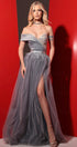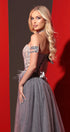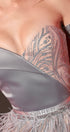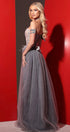 ДЪЛЪГ СЕТ ТОП С ПОЛА ALLYSON ДАНТЕЛА ГЛИТЕР САТЕН ТЮЛ БРОКАТ СРЕБЪРЕН С НЮД