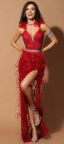 ДЪЛЪГ СЕТ ТОП С ПОЛА ANETA ДАНТЕЛА ГЛИТЕР ПЕРА ЧЕРВЕН