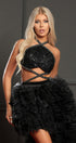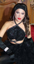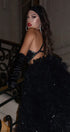 ДЪЛЪГ СЕТ ТОП С ПОЛА ARTHEMIS ПАЙЕТИ КАМЪНИ ТЮЛ БРОКАТ ЧЕРЕН