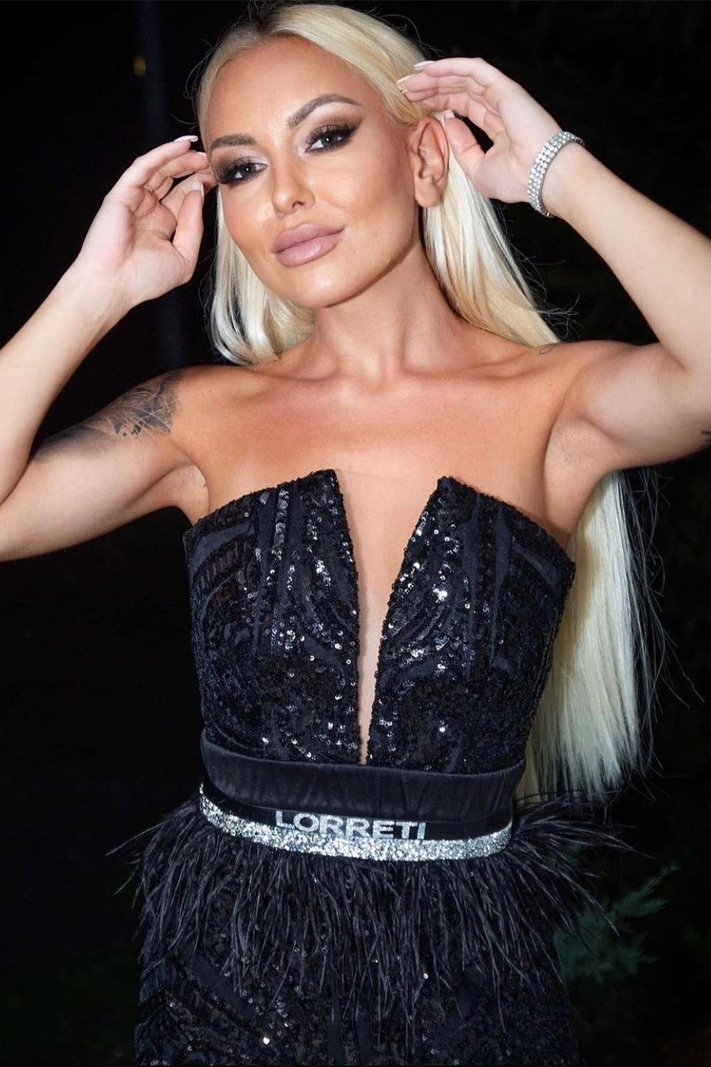 ДЪЛЪГ СЕТ ТОП С ПОЛА AURELIA ДАНТЕЛА ГЛИТЕР ЧЕРЕН