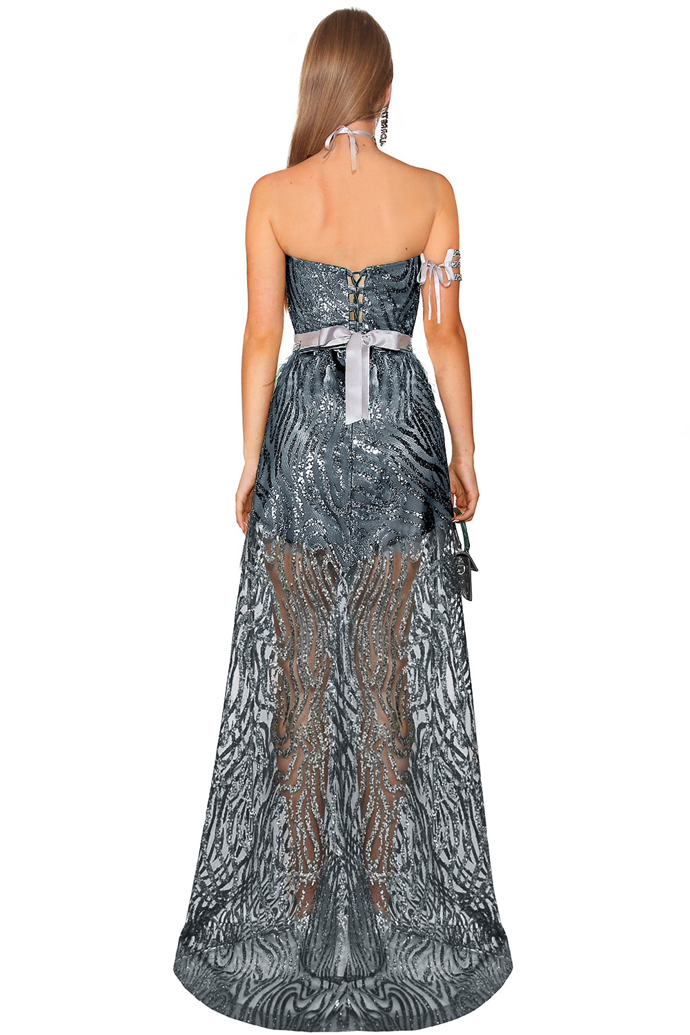 ДЪЛЪГ СЕТ ТОП С ПОЛА AURELIA ДАНТЕЛА ГЛИТЕР ГРАФИТ