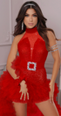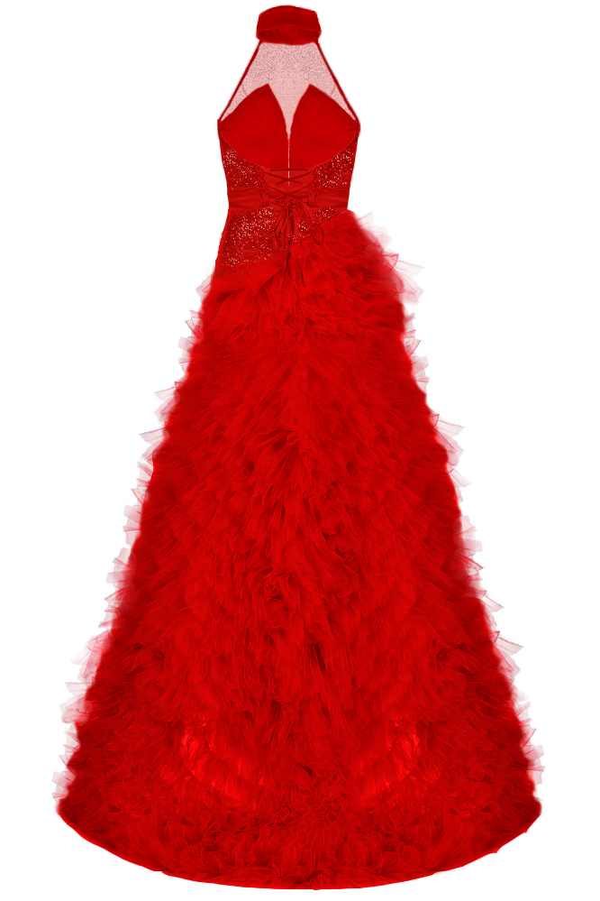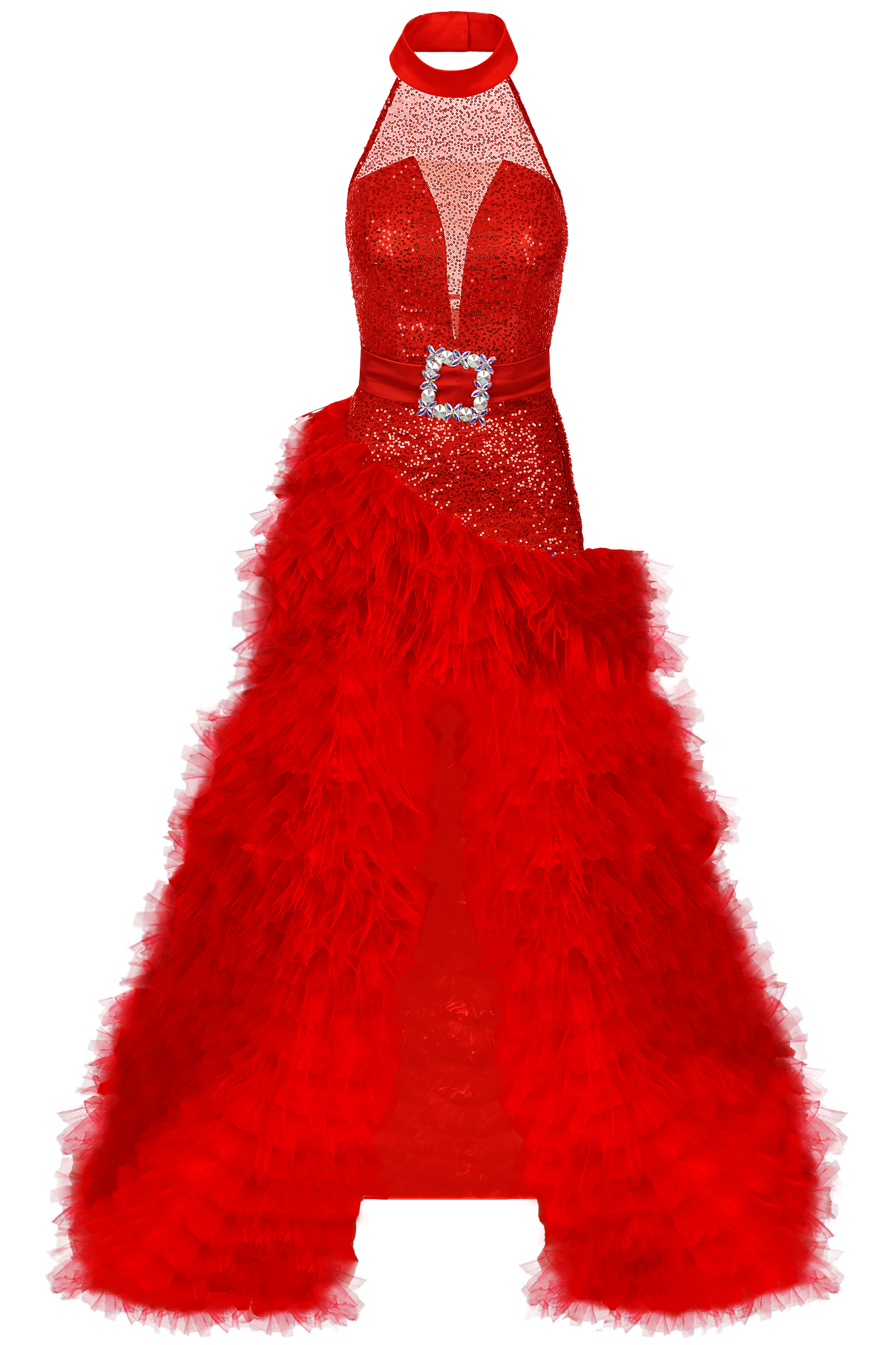 ДЪЛЪГ СЕТ ТОП С ПОЛА BETSY ПАЙЕТИ ТЮЛ ЧЕРВЕН