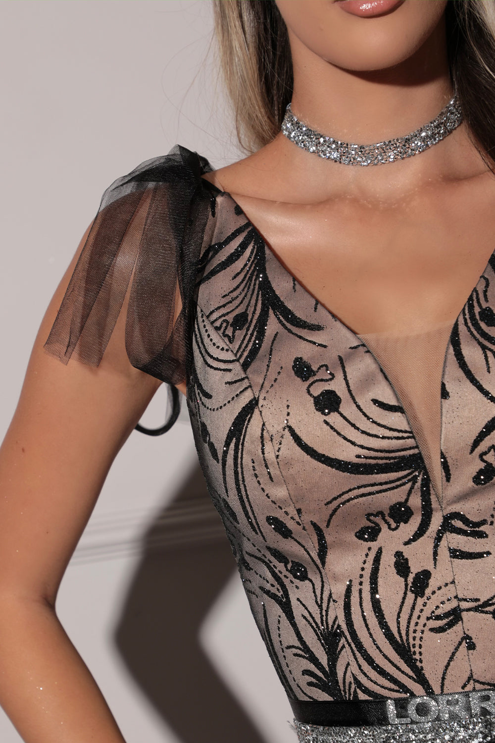 ДЪЛЪГ СЕТ ТОП С ПОЛА BRENNA ДАНТЕЛА ГЛИТЕР САТЕН ЧЕРЕН С НЮД