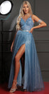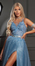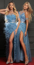 ДЪЛЪГ СЕТ ТОП С ПОЛА BRISTOL ДАНТЕЛА ГЛИТЕР ПЕРА ТЮЛ БРОКАТ СВЕТЛО СИН