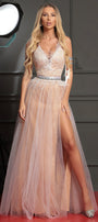 ДЪЛЪГ СЕТ ТОП С ПОЛА BRISTOL ДАНТЕЛА ГЛИТЕР ПЕРА ТЮЛ БРОКАТ БЯЛ С НЮД