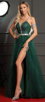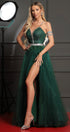 ДЪЛЪГ СЕТ ТОП С ПОЛА CANDICE ДАНТЕЛА ГЛИТЕР КАМЪНИ ТЮЛ БРОКАТ ТЪМНО ЗЕЛЕН