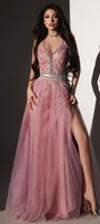 ДЪЛЪГ СЕТ ТОП С ПОЛА CANDICE ДАНТЕЛА ГЛИТЕР КАМЪНИ ТЮЛ БРОКАТ ПУДРА