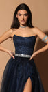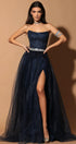 ДЪЛЪГ СЕТ ТОП С ПОЛА CARA ДАНТЕЛА ГЛИТЕР ТЮЛ БРОКАТ ТЪМНО СИН