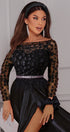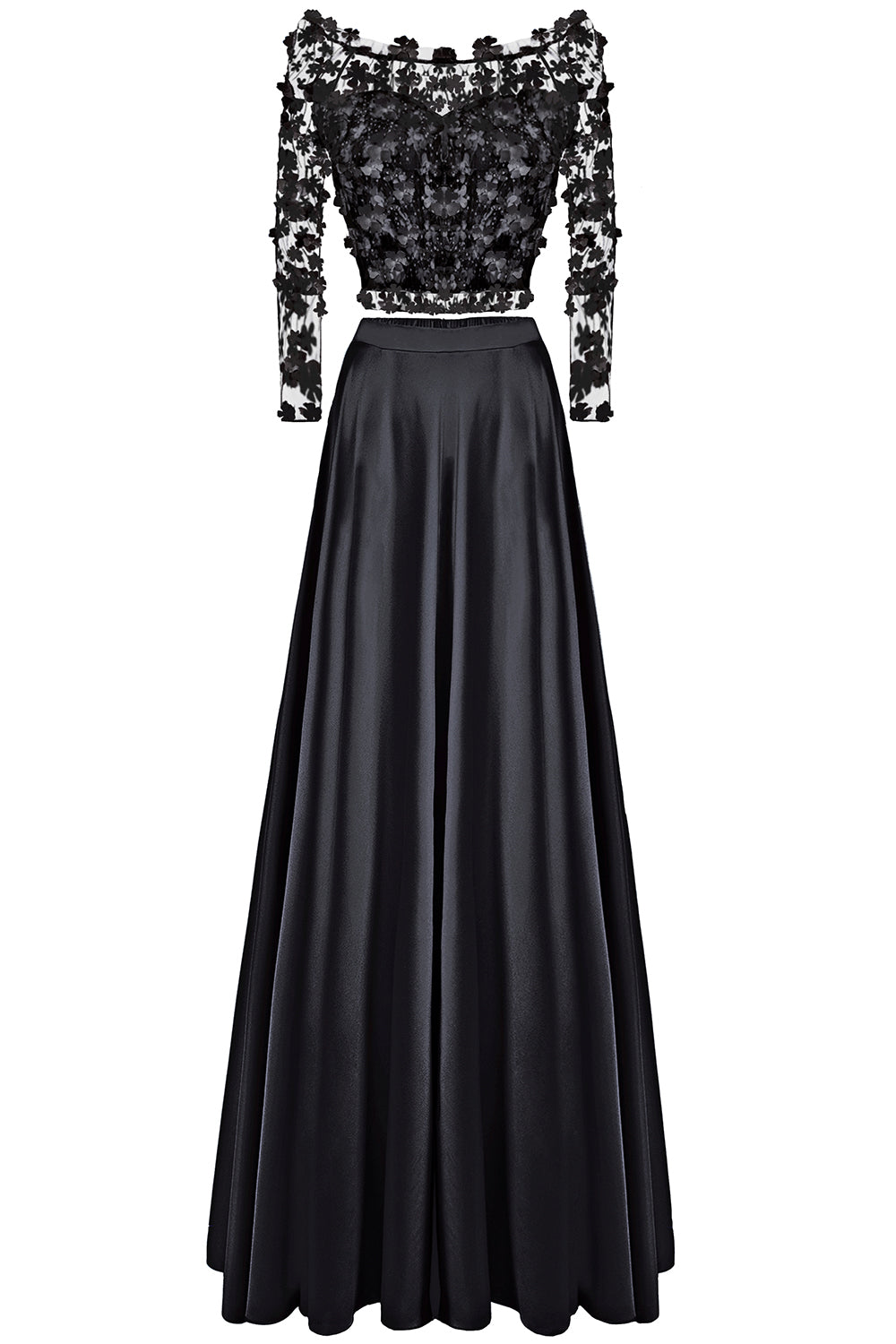 ДЪЛЪГ СЕТ ТОП С ПОЛА CARMEN ДАНТЕЛА САТЕН ЧЕРЕН